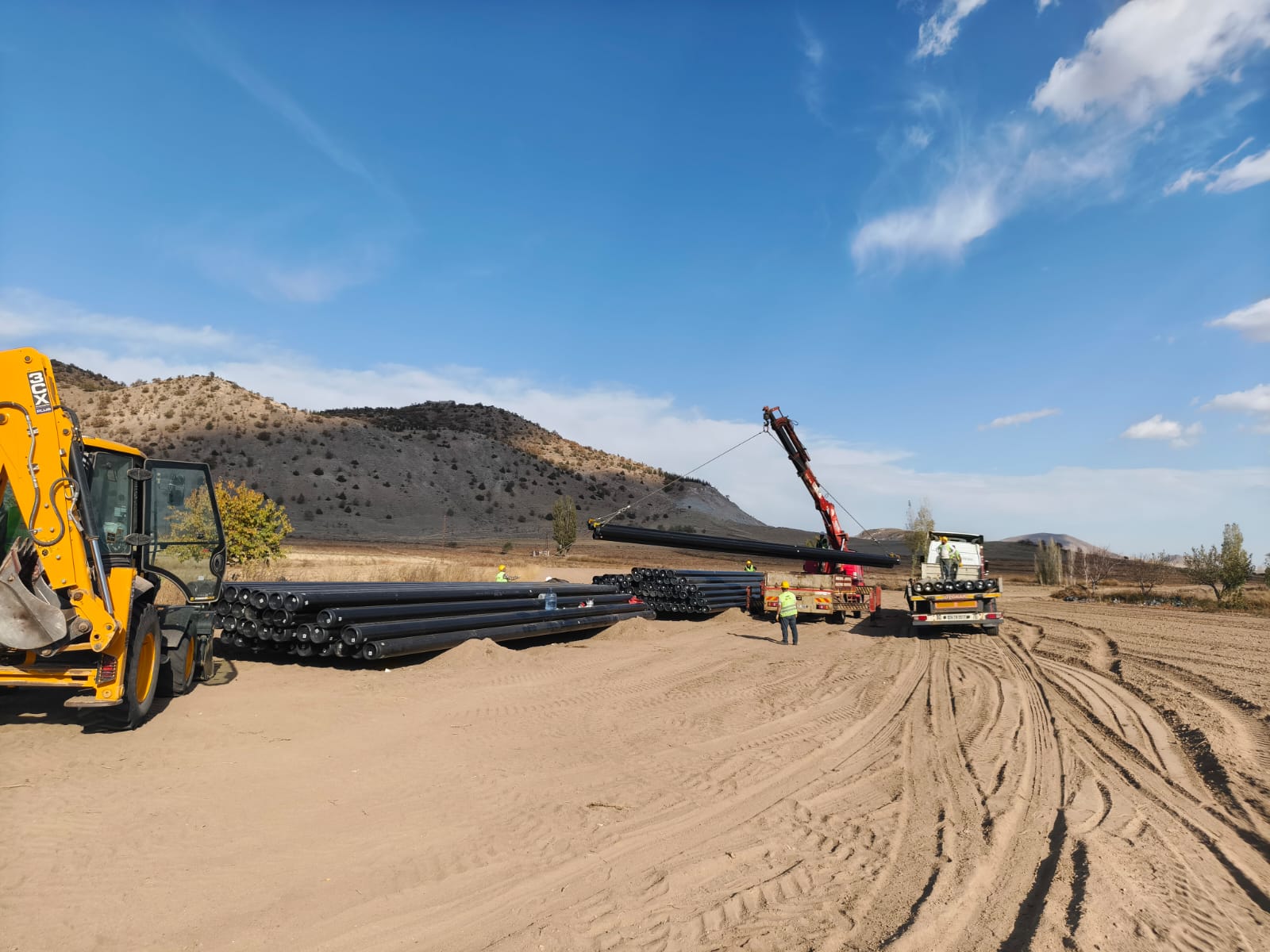 Başkan Güneş yaptığı açıklamada, kepçelerle açılan hat üzerine yerleştirilecek boruların araziye taşınmaya başlandığını belirterek, önümüzdeki günlerde boru döşeme işlemlerine geçileceğini ifade etti.