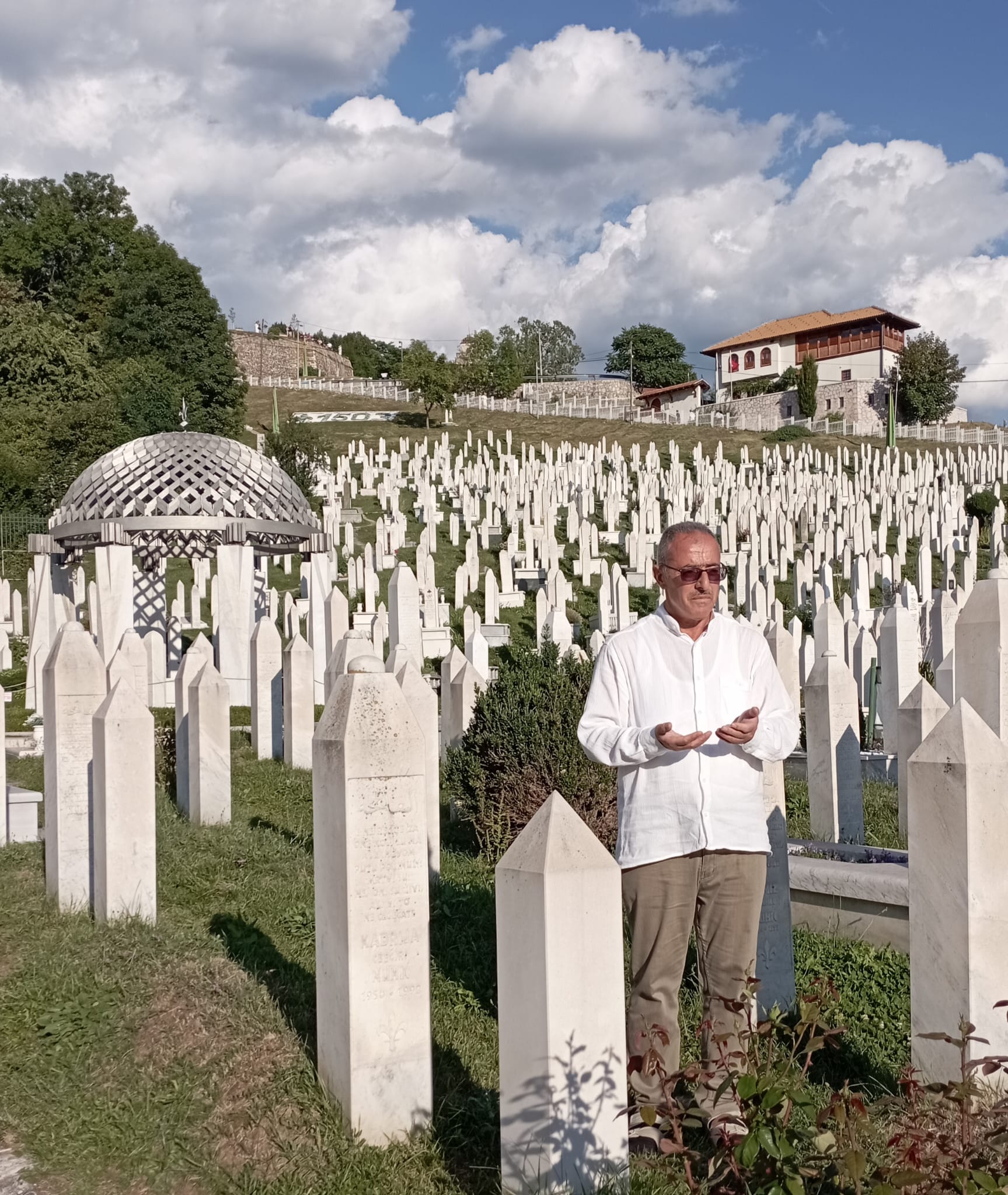 Bosnada şehit olmuş binlerce Bosnalı şehitin bir kısmının medfun olduğu Bosna şehitliğini ve liderleri bilge kral Aliya İzzetbegoviç' in kabrini ziyaret ediyoruz. Aliya İzzetbegoviç: “Her fâni gibi ben de öleceğim. Öldüğümde mezarıma anıt yapmayın; Osmanlı askerleriyle, Bosna şehitleriyle yan yana yatmak istiyorum.” demiş ve şehitlikte şehitlerle birlikte yatmakta. Dikkatimizi çekecek olan bir diğer şey Aliya İzzetbegoviç’ in mezar taşına sıfat olarak “cumhurbaşkanı” değil, “Abdullah / Allah’ ın kulu” yazdırmış olmasıdır. Aliya İzzetbegoviç’ in kabir toprağının bir kısmı İstanbul’dan, Fatih Sultan Mehmet Han’ ın türbesinden getirilmiştir. Kabrin başında önceden okuduğumuz hatmi şeriflerin duasını grubumuzla birlikte çok duygulu bir atmosferde yaptım. Fikirleri ve tarihe bıraktığı mirasın ölmediği ve çağımızın en karizmatik, en bilge, en medeni devlet başkanlarından biri olan Aliya İzzetbegovic’ in kabrini bir cennet bahçesini dolaşma ferahlığı ile ziyaret etmenin huzuru ile mezarlıktan ayrılıyoruz.