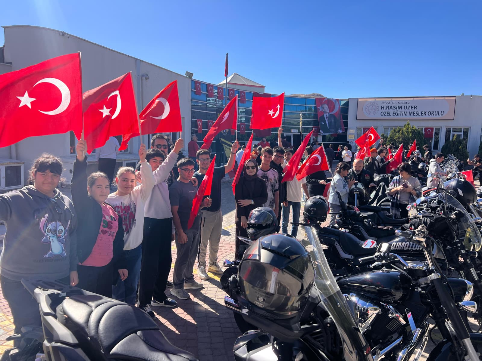 29 Ekim Cumhuriyet Bayramı’nın 102. yıl dönümü dolayısıyla, Cappadocia Turk Riders Motosiklet Kulübü üyeleri anlamlı bir sosyal sorumluluk etkinliğine imza attı. Kulüp üyeleri, bayram coşkusunu paylaşmak ve özel öğrencilere moral vermek amacıyla H. Rasim Uzer Özel Eğitim Meslek Okulunu ziyaret etti.