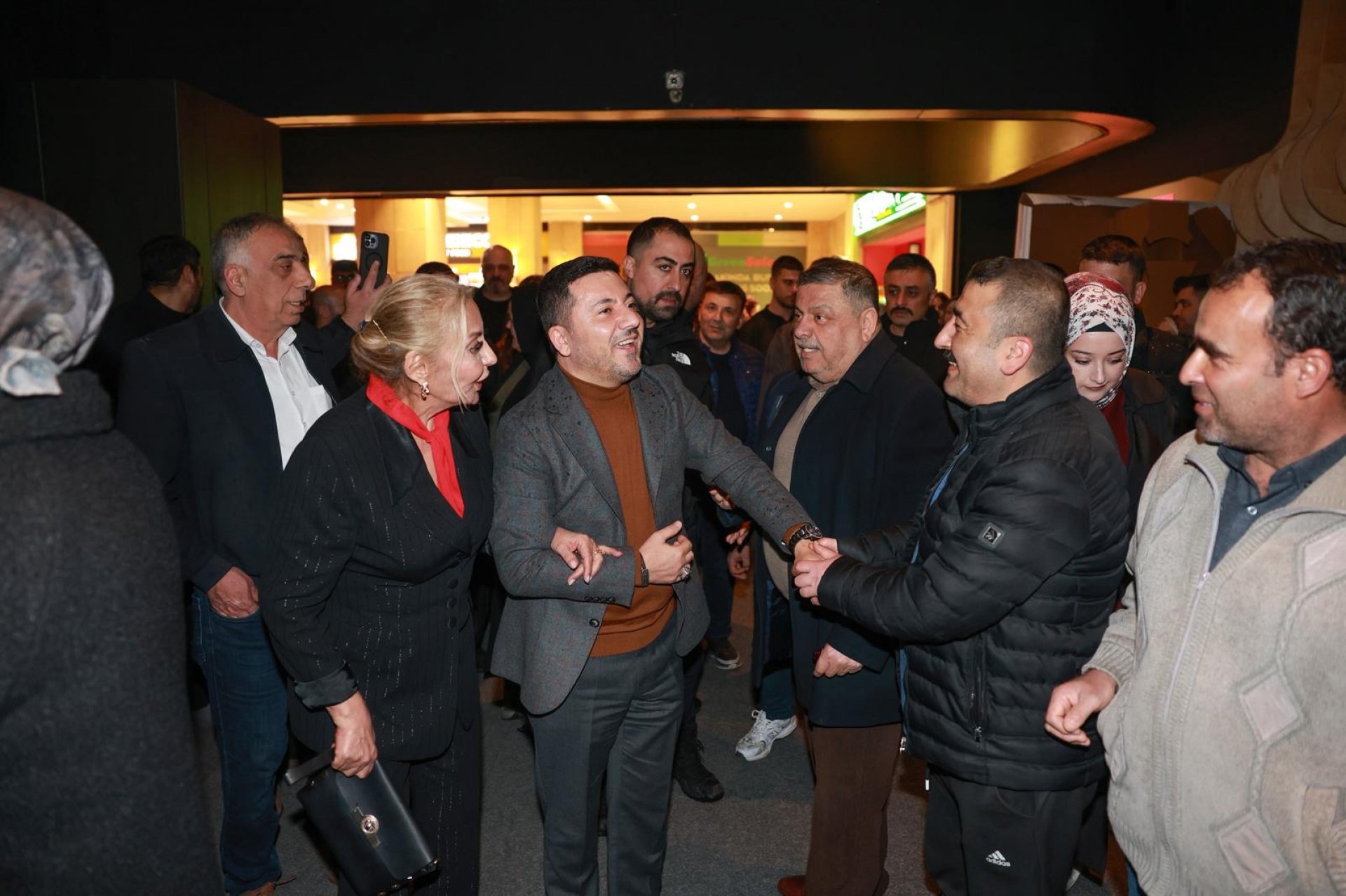 Belediye Başkanımız Rasim Arı’nın film oyuncuları Vedat İnceefe ve Şiva Behrouzfar ile Abdullah Çatlı’nın ailesinden Meral Çatlı, Gökçen Çatlı ve Selcen Çatlı’nın salonda yer alması geceye ayrı bir anlam ve renk kattı.