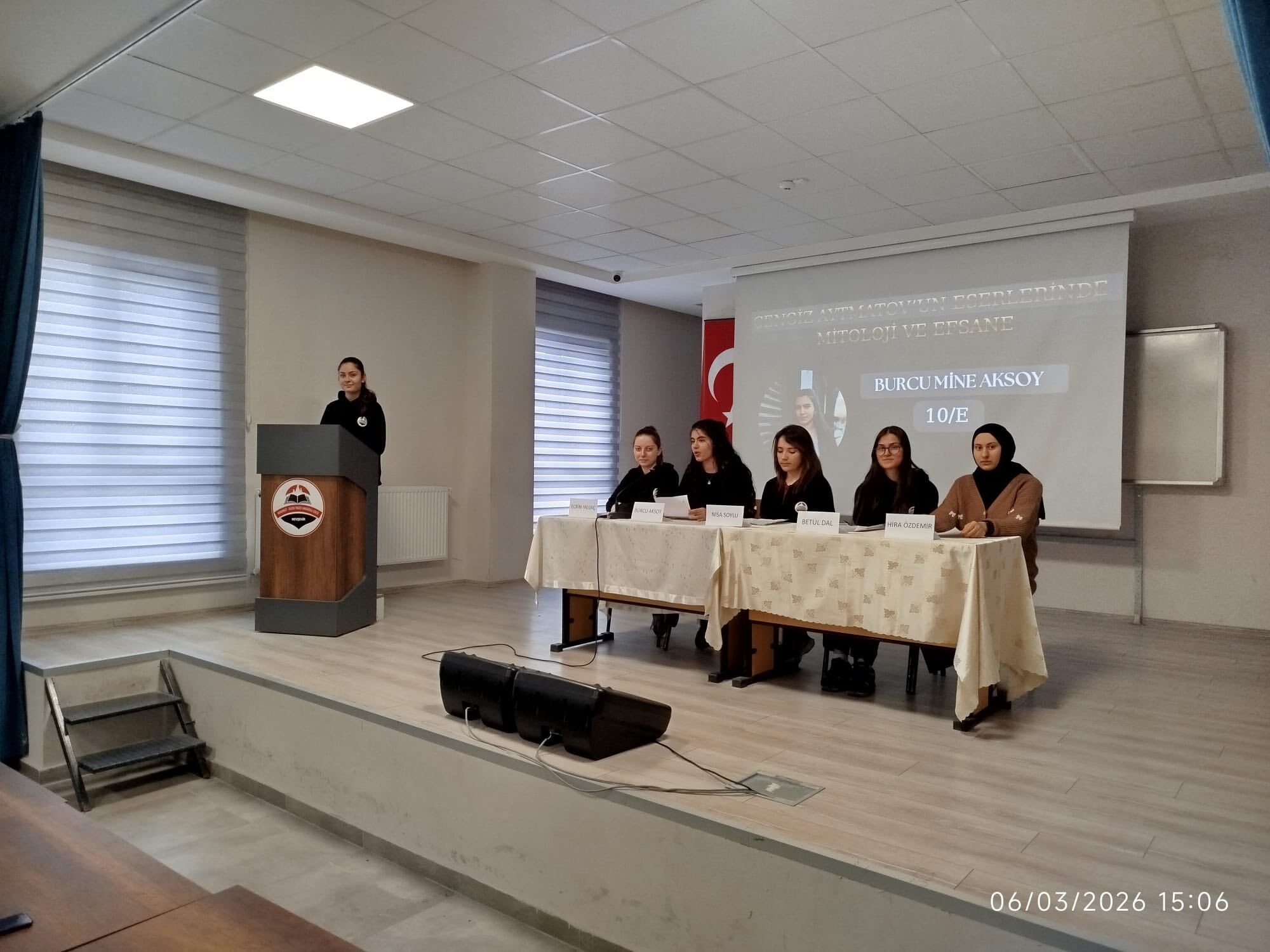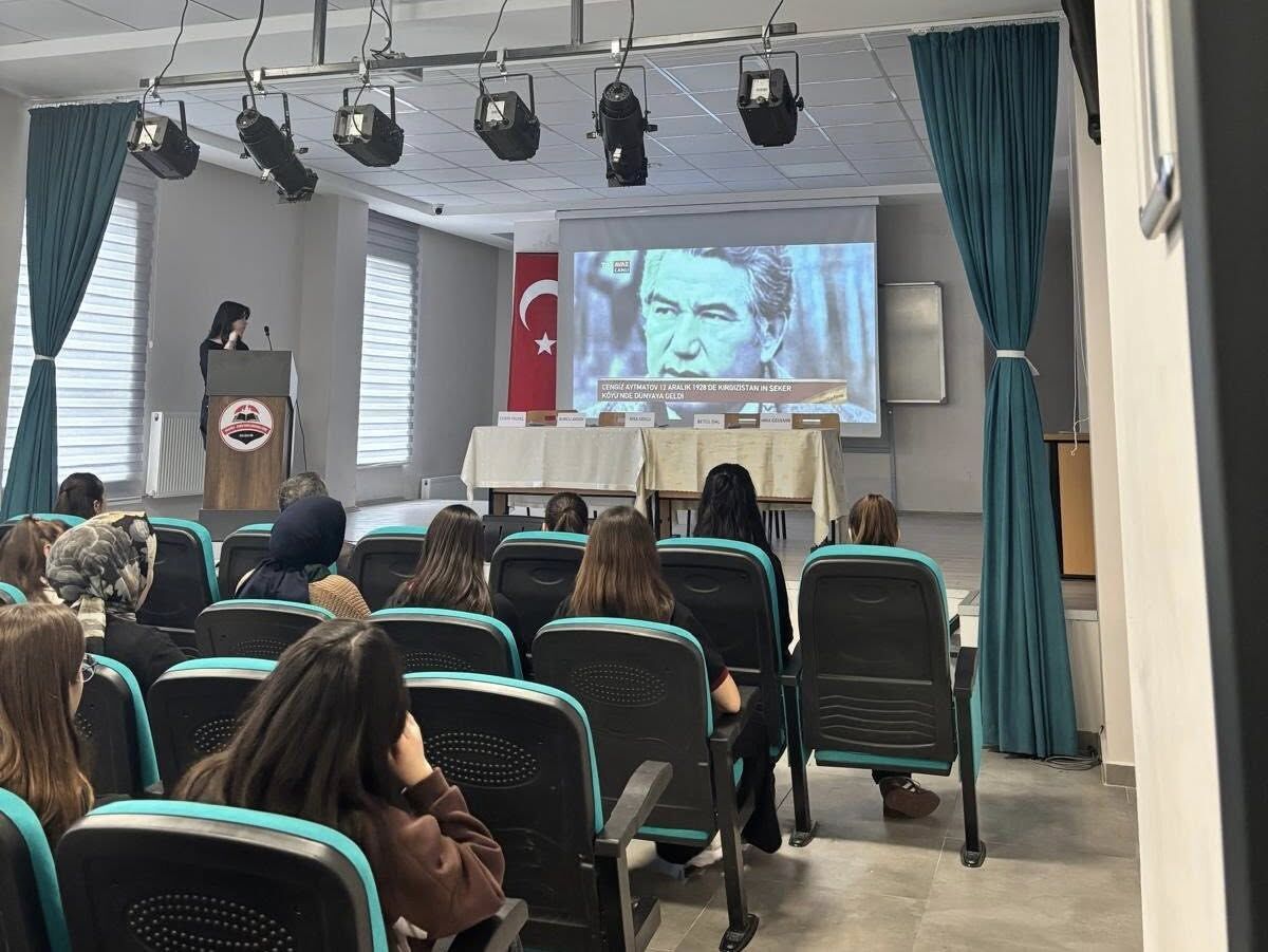 Panelde öğrenciler, Aytmatov’un eserleri ve fikir dünyasına dair çeşitli sunumlar gerçekleştirdi. Programda öne çıkan konular arasında şunlar yer aldı: