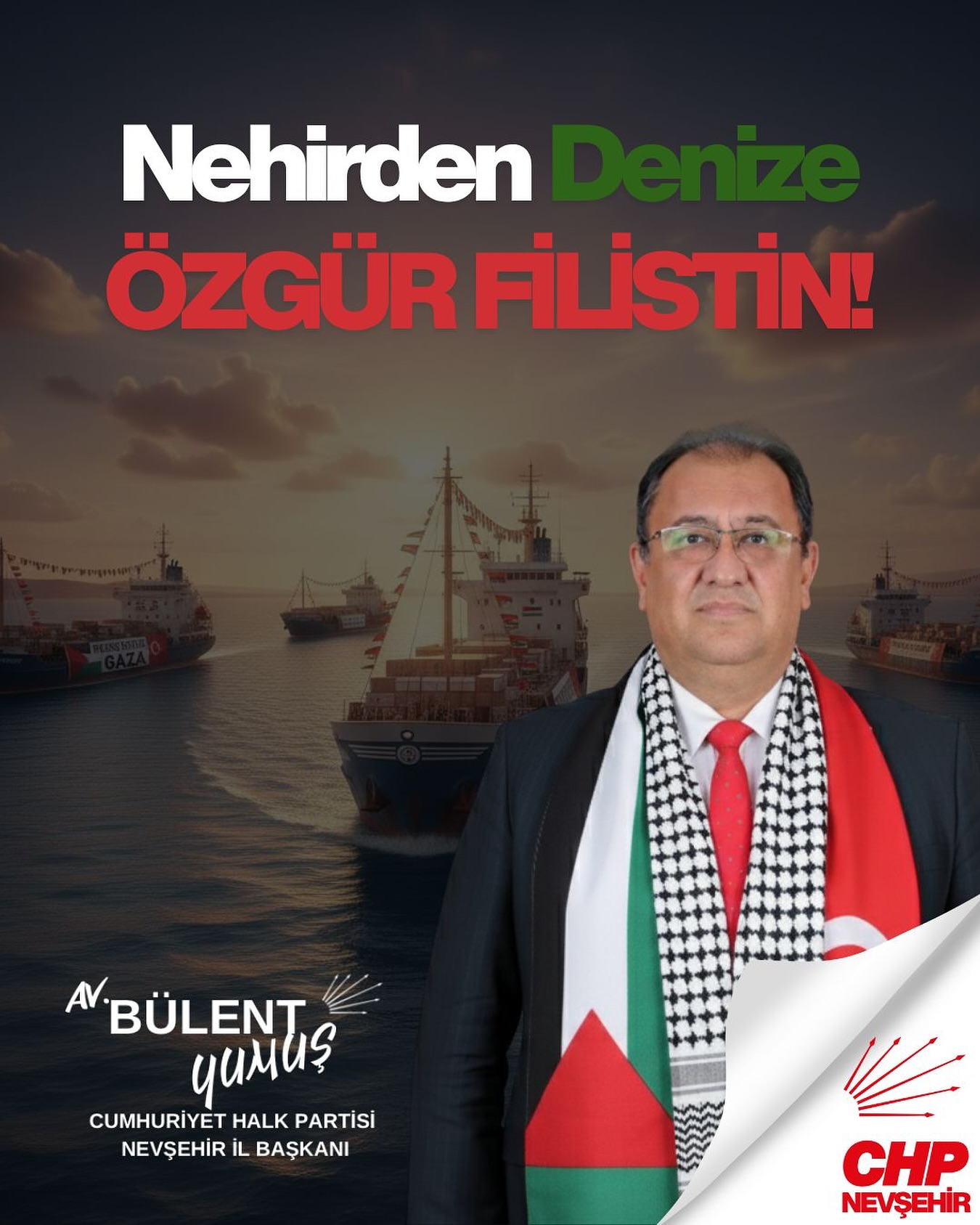 CHP Nevşehir İl Başkanı Av. Bülent Yumuş, Filistin halkına yönelik İsrail’in uyguladığı işgal ve zulme dikkat çekerek, Özgürlük/Sumud Filosu’na verdikleri desteği açıkladı.