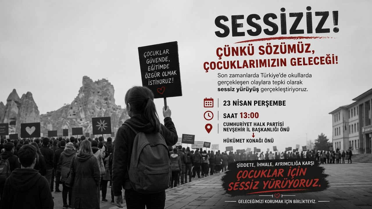 Cumhuriyet Halk Partisi Nevşehir İl Başkanlığı, son dönemde okullarda yaşanan olaylara dikkat çekmek amacıyla “sessiz yürüyüş” düzenleyeceğini duyurdu. İl Başkanı Bülent Yumuş, yaptığı açıklamada çocukların güvenliği ve eğitimde eşitlik vurgusu yaptı.