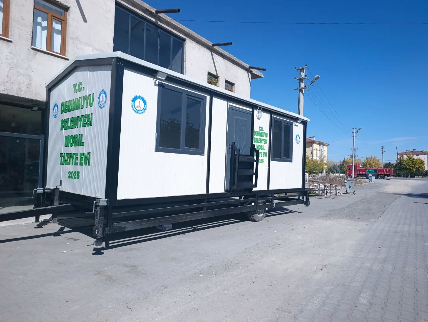 Bölgemizde bir ilk olma özelliği taşıyan Mobil Taziye Evi, taşınabilir yapısı, konforlu iç düzenlemesi ve klima sistemi ile dört mevsim kullanıma uygun şekilde tasarlandı. Bu sayede taziye ziyaretleri daha düzenli ve konforlu bir ortamda gerçekleştirilebilecek.