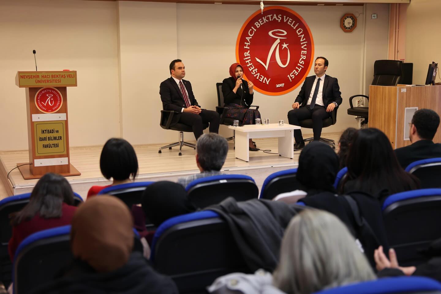Derinkuyu Kaymakamı Esra Bozan ile Gülşehir Kaymakamı Tolga Değirmenci, Nevşehir Hacı Bektaş Veli Üniversitesi (NEVÜ) İktisadi ve İdari Bilimler Fakültesi (İİBF) tarafından düzenlenen “İİBF Günleri” etkinlikleri kapsamında öğrencilerle bir araya geldi.