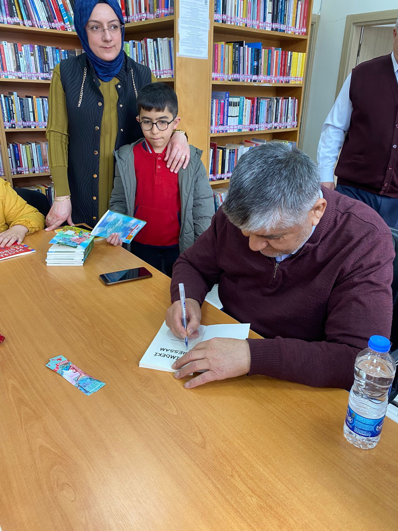 Yazar Osman Aytekin, “Macera Peşinde Gizemli Orman” ve “İçimdeki Ressam” adlı öykü kitaplarını öğrenciler için imzaladı. Aytekin, etkinlikte emeği geçen Kütüphane Müdürü Hüseyin Özdemir, Cumhuriyet İlkokulu Müdürü Erdal Şahin ve sınıf öğretmeni Tülin Sakçalı’ya teşekkür etti.