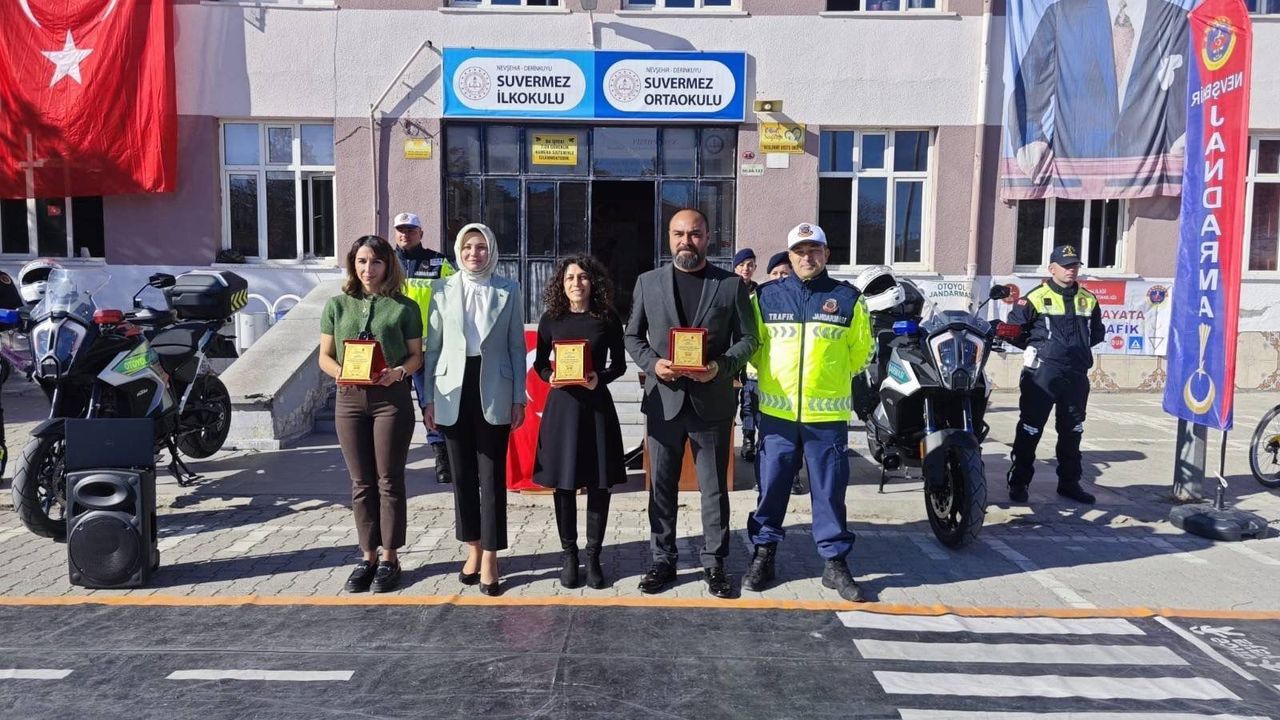 Ayrıca Nevşehir İl Jandarma Komutanlığı tarafından yürütülen “Duyarlı Sürücülere Plaket” projesi kapsamında, son beş yılda kaza yapmayan ve hakkında trafik cezası bulunmayan öğretmen ve idarecilere Kaymakam Esra Bozan tarafından plaket takdim edildi.
