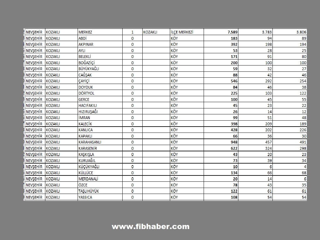 İşte Kozaklı ilçesinin belde ve köylerinin 2022 nüfusları: