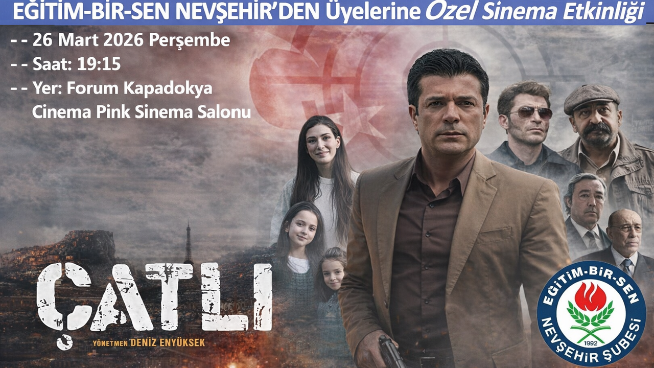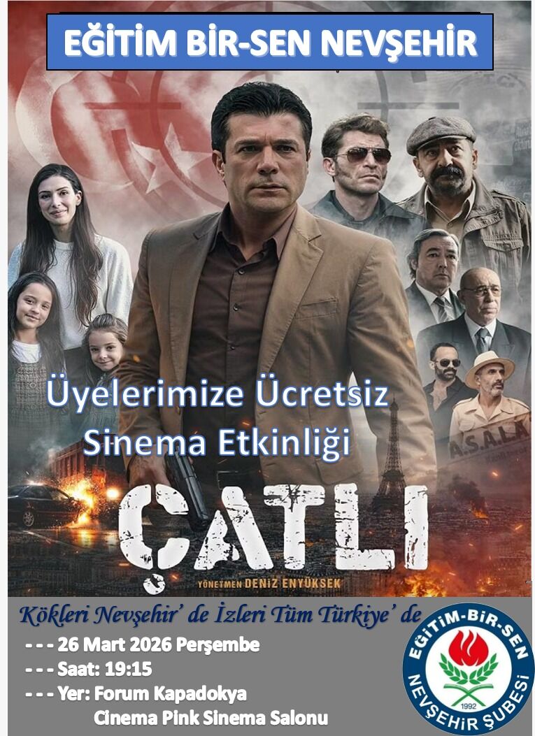 Eğitim-Bir-Sen Nevşehir Şubesi organizasyonuyla, “ÇATLI” filmi üyelerle birlikte izlenecek. Etkinlik, 26 Mart Perşembe günü saat 19.15’te Forum Kapadokya Cinema Pink’te gerçekleştirilecek.