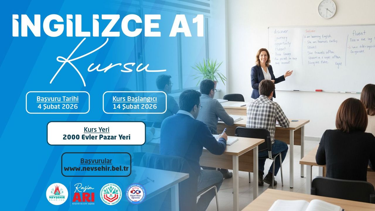 İngilizce A1 Kursu; 04 Şubat 2026 Çarşamba gününden itibaren alınmaya başlayacak olan başvurular sonrası kurs 14 Şubat 2026 tarihinde başlayıp 10 Mayıs 2026 tarihinde başlayacak. Kurs Cumartesi ve Pazar günleri 09.00 - 13.00 saatleri arasında 2000 Evler Pazaryeri kurs biriminde yapılacak.