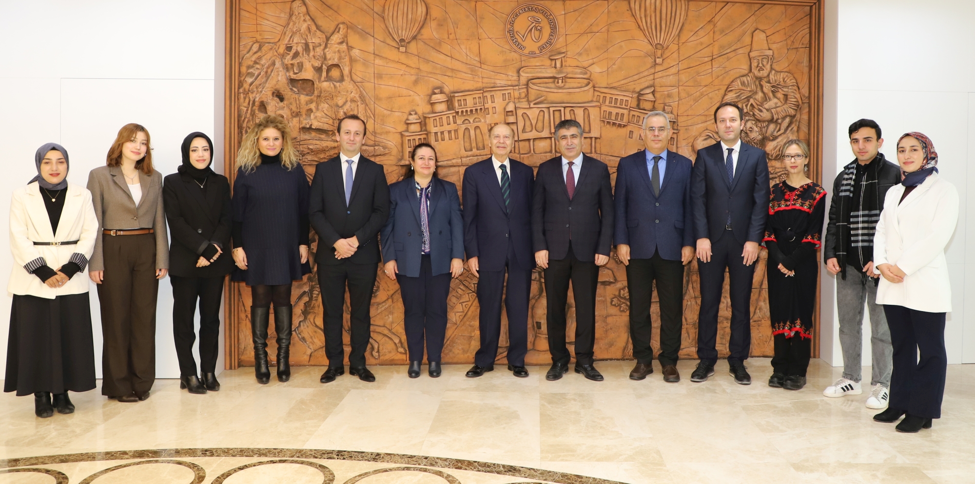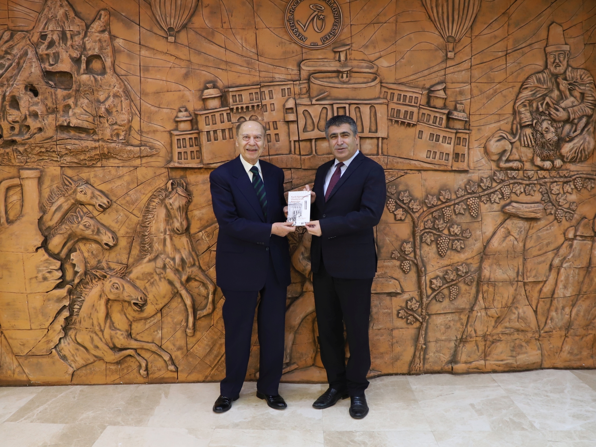 Nevşehir Hacı Bektaş Veli Üniversitesi (NEVÜ)’de düzenlenen “Diplomasi Okumaları III” etkinliğine katılmak üzere NEVÜ’de bulunan Emekli Büyükelçi Numan Hazar Rektör Prof. Dr. Semih Aktekin’i ziyaret etti.