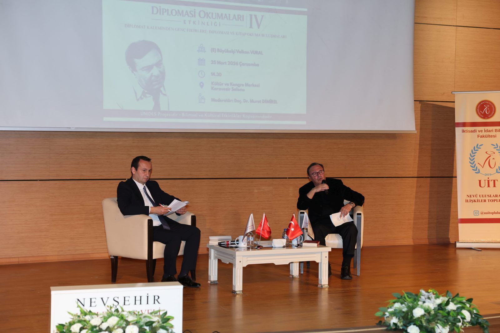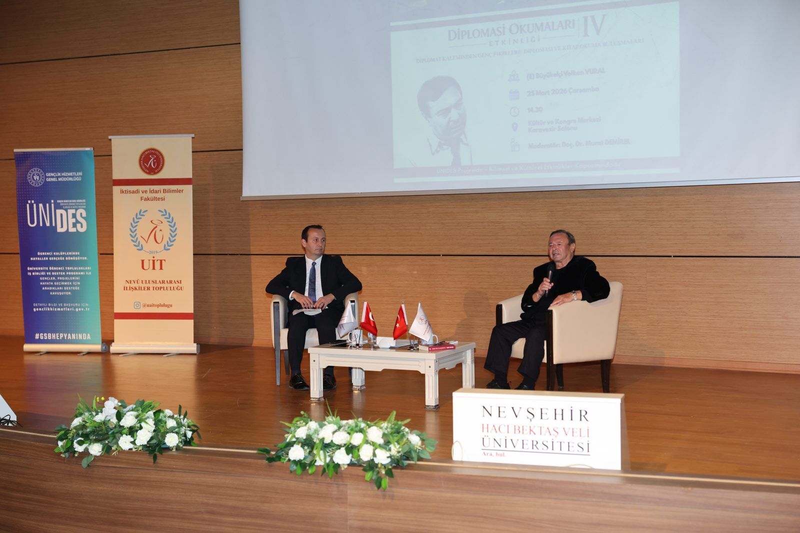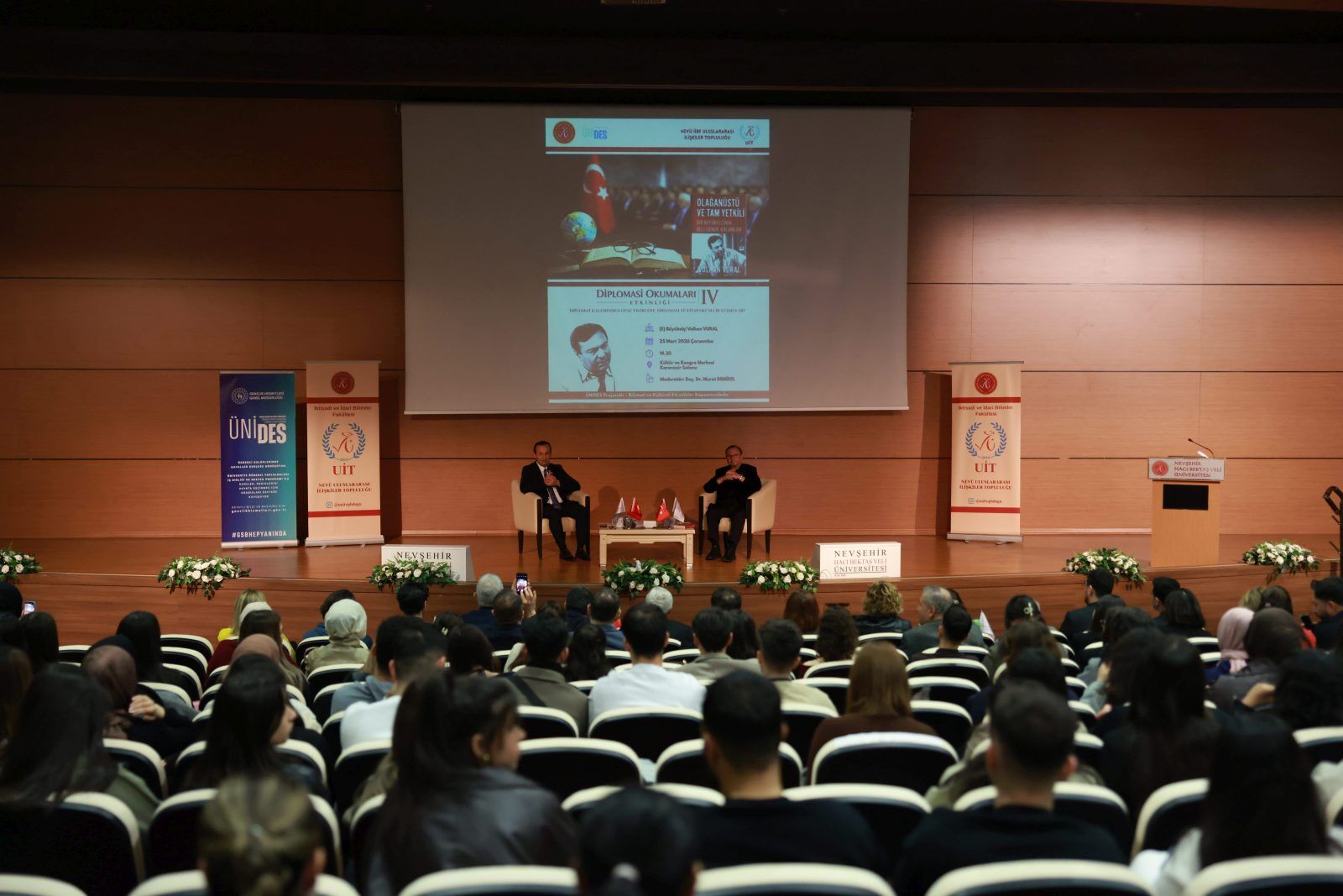 Nevşehir Hacı Bektaş Veli Üniversitesi (NEVÜ) İktisadi ve İdari Bilimler Fakültesi (İİBF) Uluslararası İlişkiler Topluluğu tarafından, Üniversite Öğrenci Toplulukları İş Birliği ve Destek Programı (ÜNİDES) kapsamında (E) Büyükelçi Volkan Vural'ın konuşmacı olduğu "Diplomat Kaleminden Genç Fikirlere: Diplomasi ve Kitap Okuma Buluşmaları” konulu program düzenlendi.