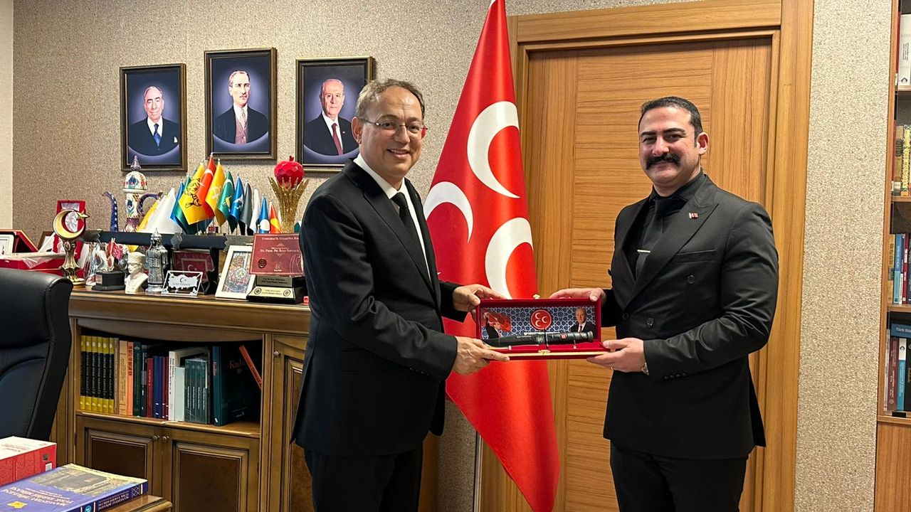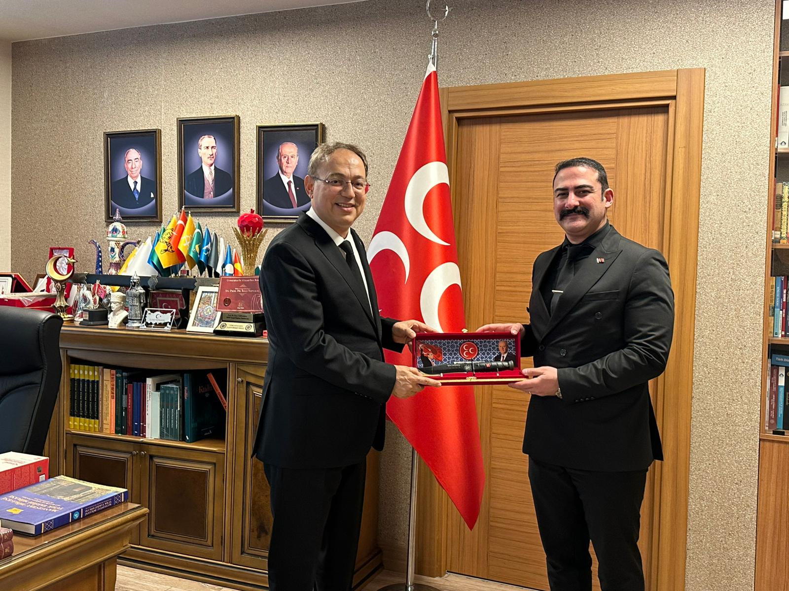 Gerçekleştirilen nezaket ziyaretinde bölgesel gelişmeler, turizm yatırımları ve ülke gündemine ilişkin karşılıklı görüş alışverişinde bulunuldu. Ziyaret sırasında iş insanı Emin Koçak, MHP Lideri Devlet Bahçeli’nin isminin işlendiği özel yapım bir hatıra kılıcı Prof. Dr. Topsakal’a takdim etti.