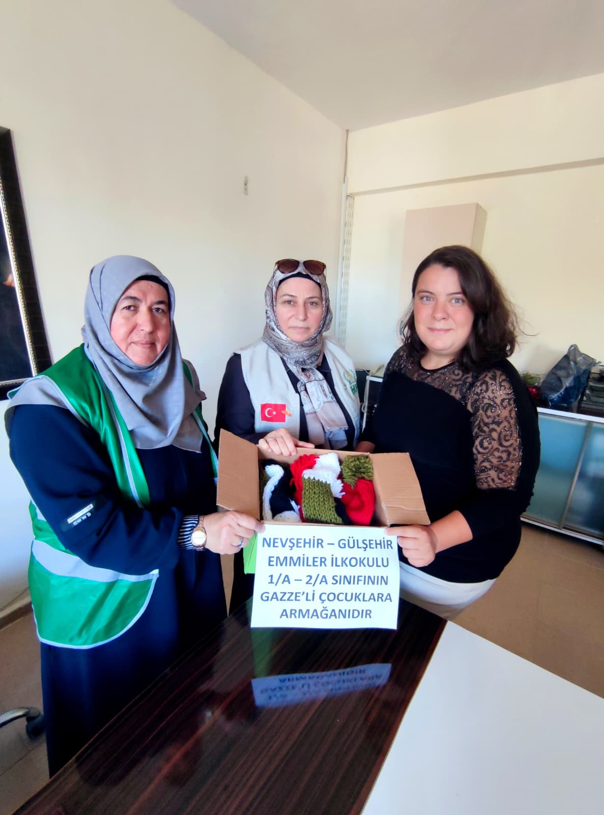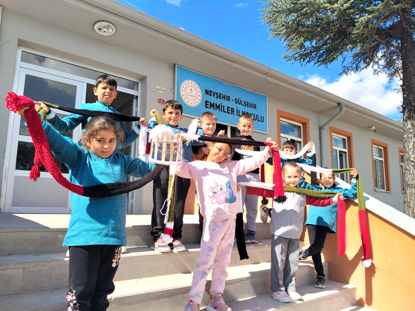 Nevşehir'in Gülşehir ilçesine bağlı Emmiler Köyü İlkokulu öğrencileri, öğretmenleri ve velileriyle birlikte anlamlı bir dayanışma örneğine imza attı. Okulun 1/A ve 2/A sınıfı öğrencileri, sınıf öğretmenleri Tarık Ramazan Akar rehberliğinde Gazze’de zulüm gören çocuklar için Filistin bayrağının renklerinde atkılar ördü.