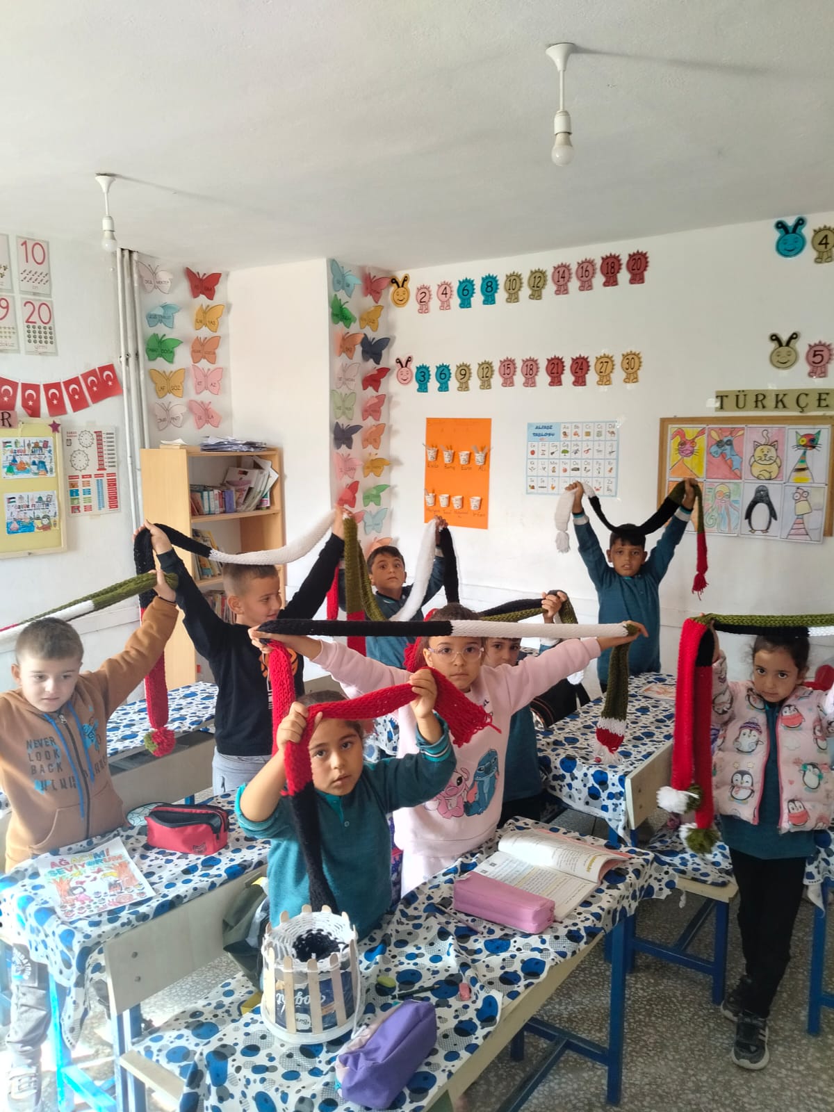 Yaklaşan kış mevsimi öncesi Gazze’deki çocukların yaşadığı zorluklara dikkat çekmek isteyen minik öğrenciler, ellerine şişlerini ve yünlerini alarak kırmızı, yeşil, beyaz ve siyah renklerde atkılar ördü. Ailelerin de desteğiyle örülen atkılar, hem anlamlı bir dayanışmanın hem de çocuklarda empati duygusunun gelişmesine katkı sundu.