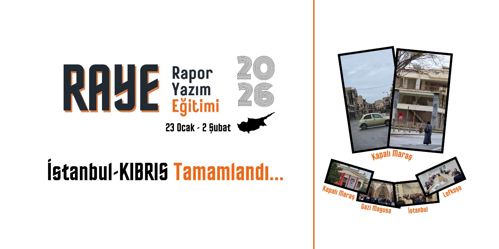 RAYE 2026 Kıbrıs programı, 23 Ocak – 2 Şubat 2026 tarihleri arasında iki aşamalı olarak gerçekleştirildi. İstanbul’da dört gün süren teorik eğitimlerde; araştırma yöntemleri, akademik rapor yazım teknikleri, saha çalışmasının metodolojisi, mekân ve insan okumaları gibi başlıklarda kapsamlı dersler verildi.