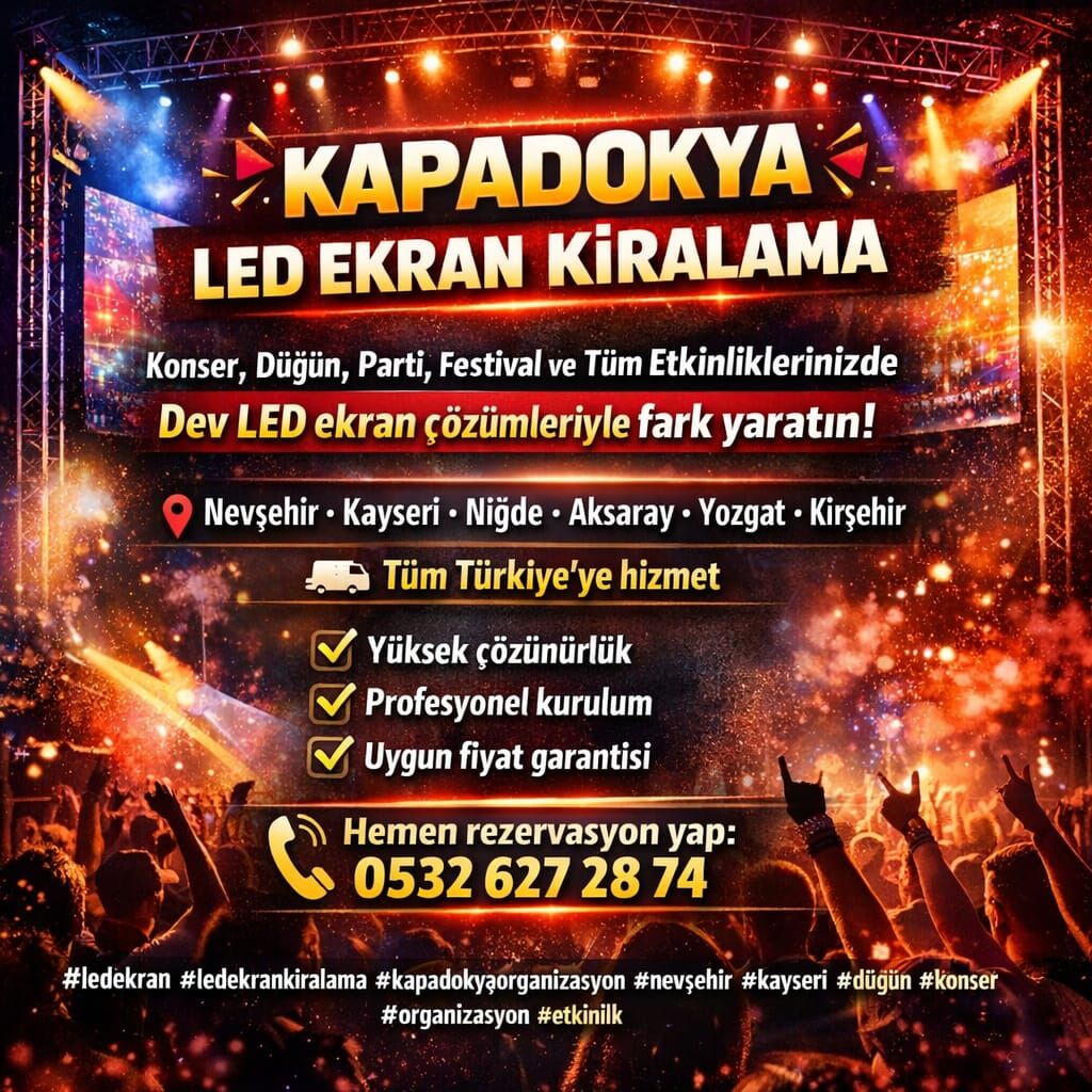 Kapadokya başta olmak üzere Türkiye genelinde hizmet sunan LED ekran kiralama firmaları, özellikle yaz sezonuyla birlikte yoğun talep görüyor. Yetkililer, organizasyon tarihlerini erkenden planlayanların avantaj sağladığını belirterek, “Yoğunluk nedeniyle son dakika taleplerine her zaman cevap veremeyebiliyoruz. Bu yüzden erken rezervasyon büyük önem taşıyor” uyarısında bulunuyor.