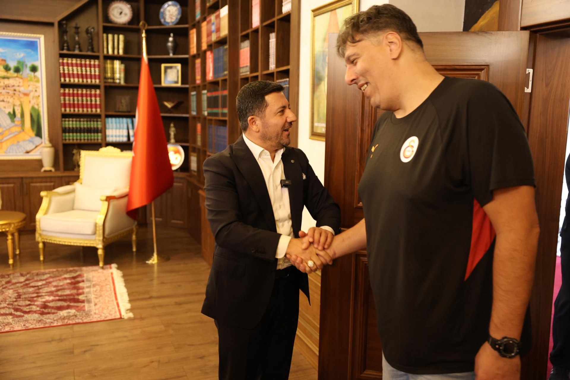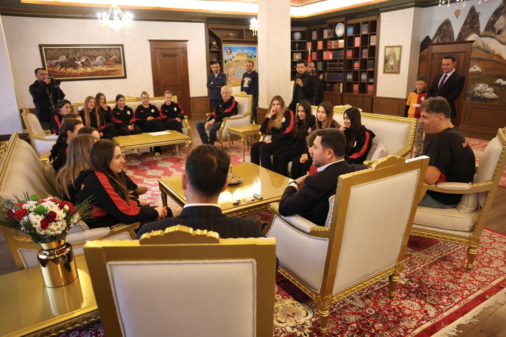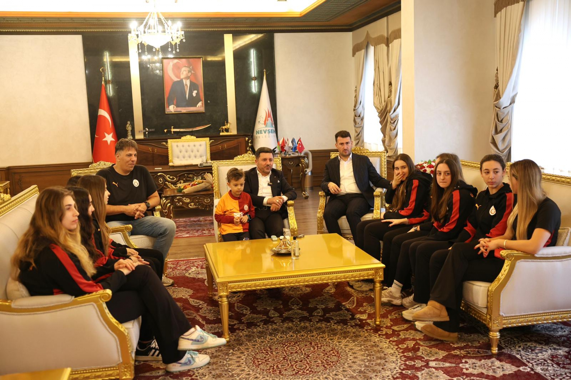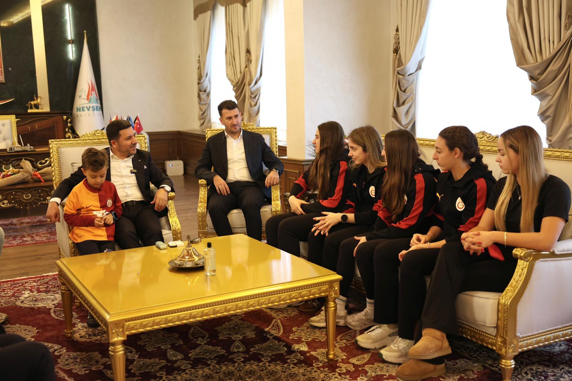 Kadınlar 1. Lig Altın grubunda mücadele eden Nevşehir Belediyesi Spor Kulübü Kadın Sutopu takımının davetiyle Nevşehir’e gelen Galatasaray Sutopu Kadın takımı Nevşehir Belediye Başkanı Rasim Arı’yı makamında nezaket ziyaretinde bulundu.