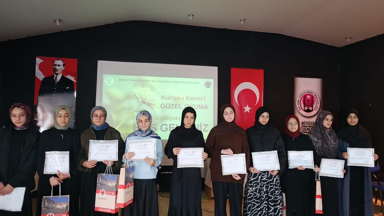 Anadolu İmam Hatip Liseleri arası Genç Nida Kur'an-ı Kerim'i Güzel Okuma Yarışması Nevşehir il Finali sonucunda;