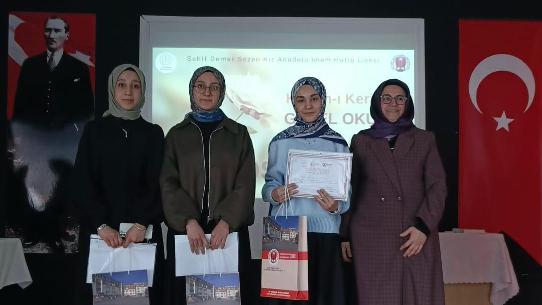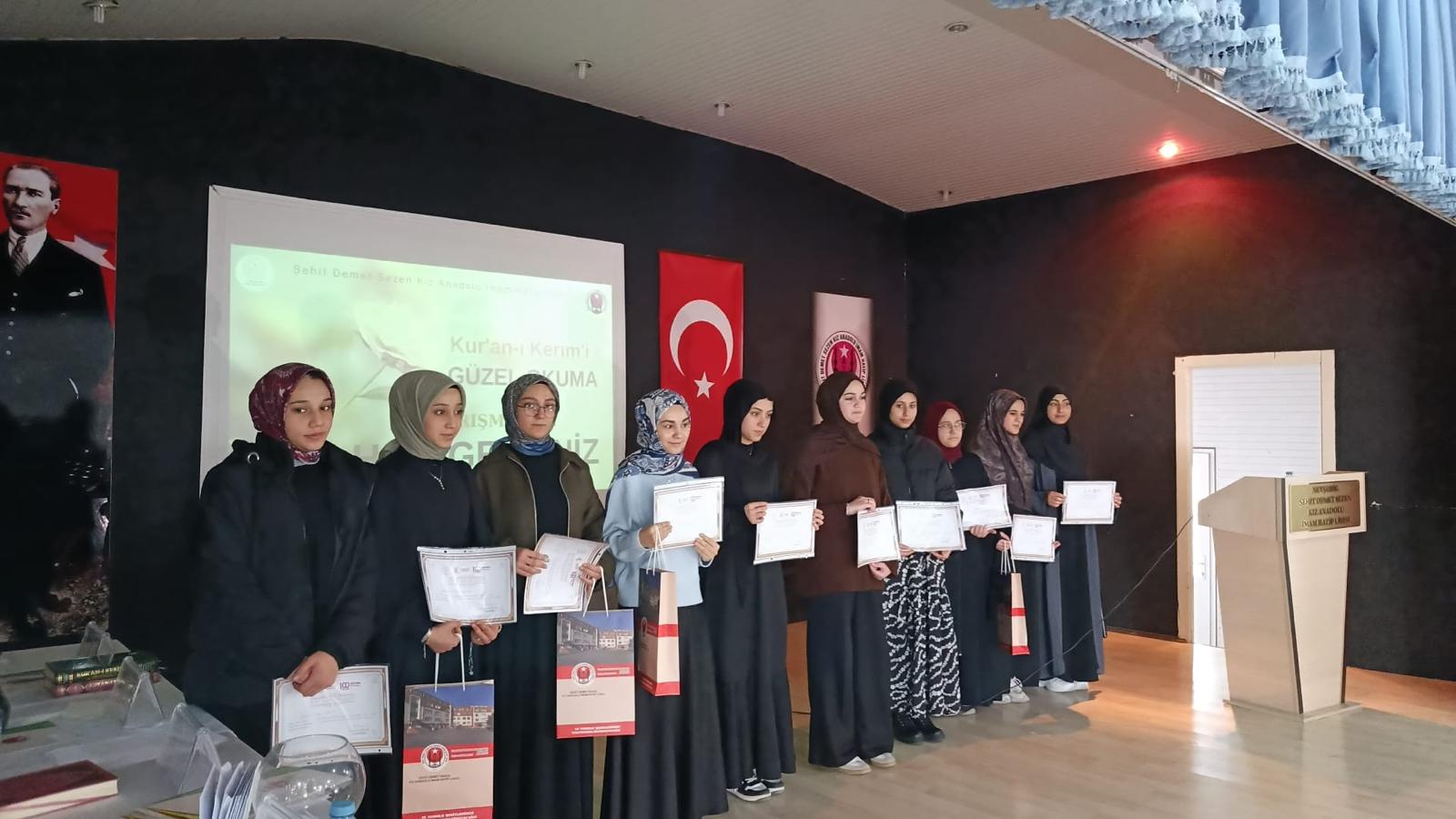 Mesleki Yarışmalarda İl finalinin sonuncusu Anadolu İmam Hatip Liseleri arası "Genç Nida" Kur'an-ı Kerim'i Güzel Okuma Yarışması ve Hafızlık Yarışması, Şehit Demet Sezen Kız Anadolu İmam Hatip Lisesi koordinatörlüğünde gerçekleştirildi.