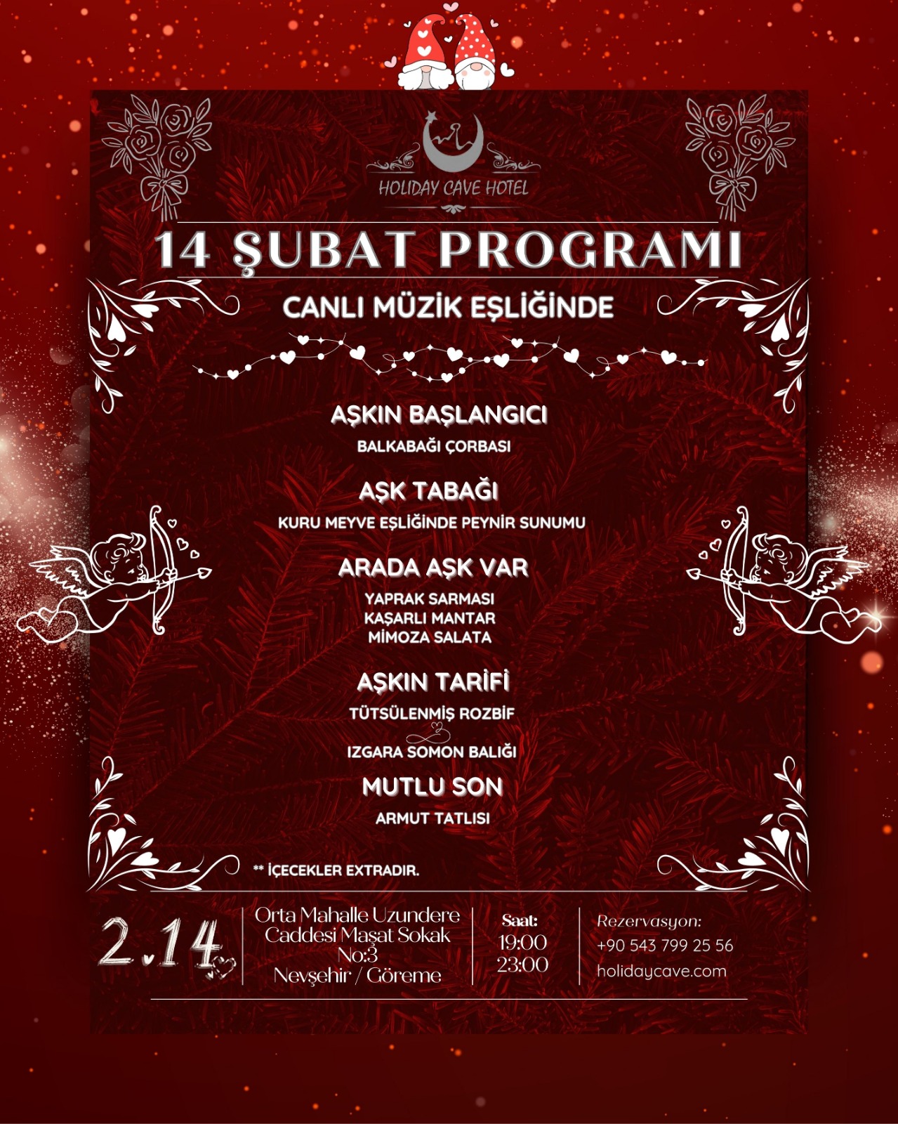 Doğal güzellikleri ve eşsiz manzarasıyla dikkat çeken Göreme’de, sevginin en özel günü için hazırlanan bu konsept, çiftlere unutulmaz bir Sevgililer Günü akşamı vadediyor.