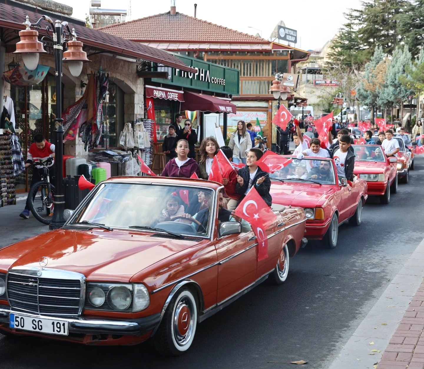 Kutlamalar, belde içinde gerçekleştirilen klasik otomobiller ve atlı kortej ile başladı. Kortej, hem yerli hem yabancı turistlerin ilgisini çekerken, renkli görüntülere sahne oldu. Gösteri boyunca cadde boyunca toplanan vatandaşlar ve çocuklar büyük bir heyecanla korteji izledi.