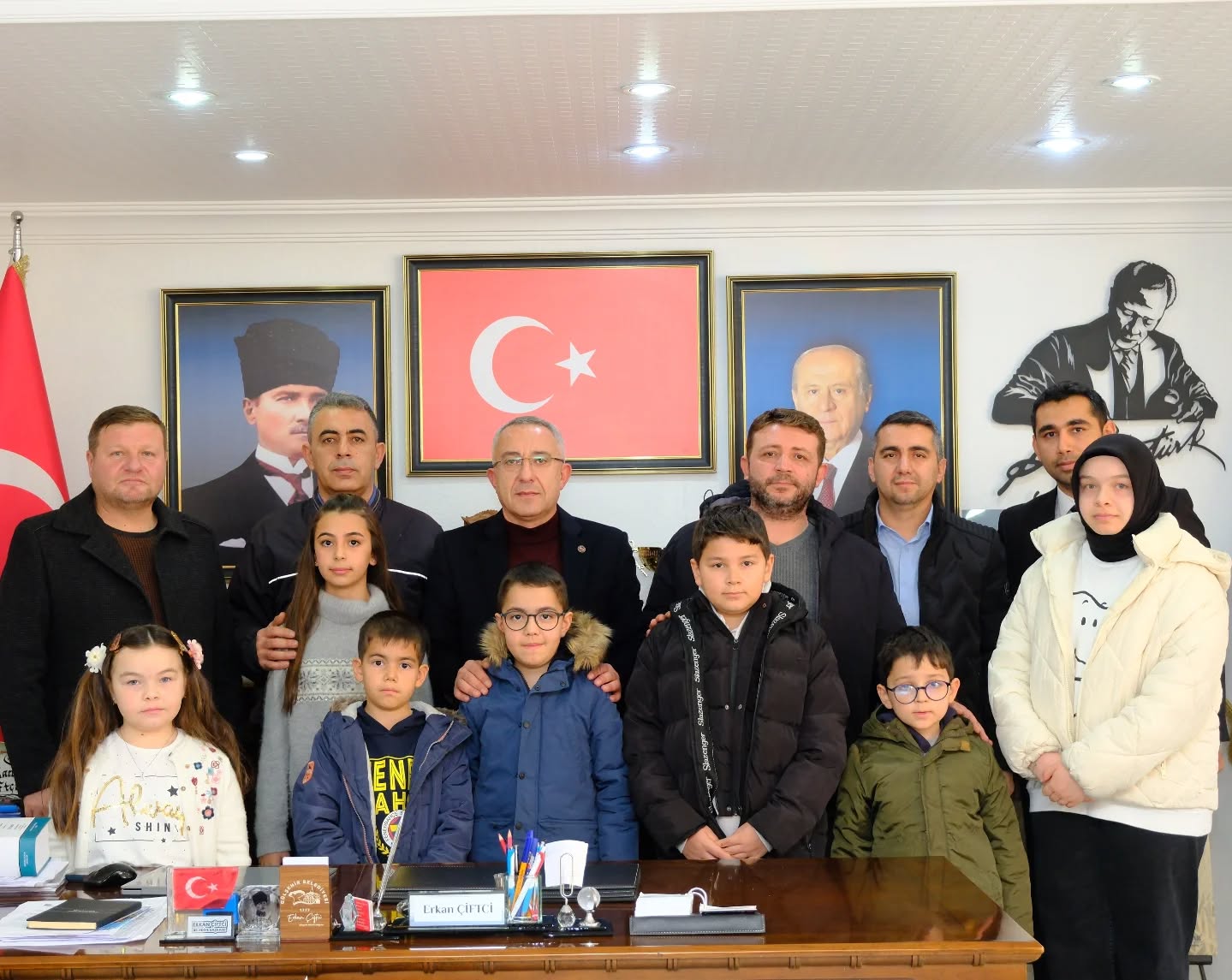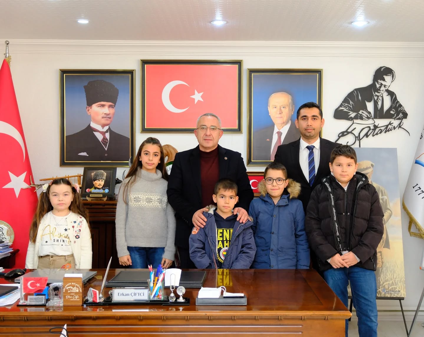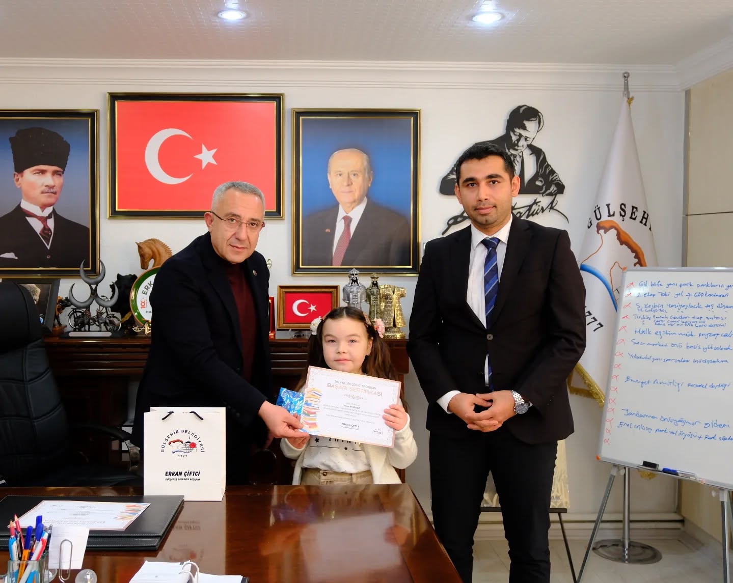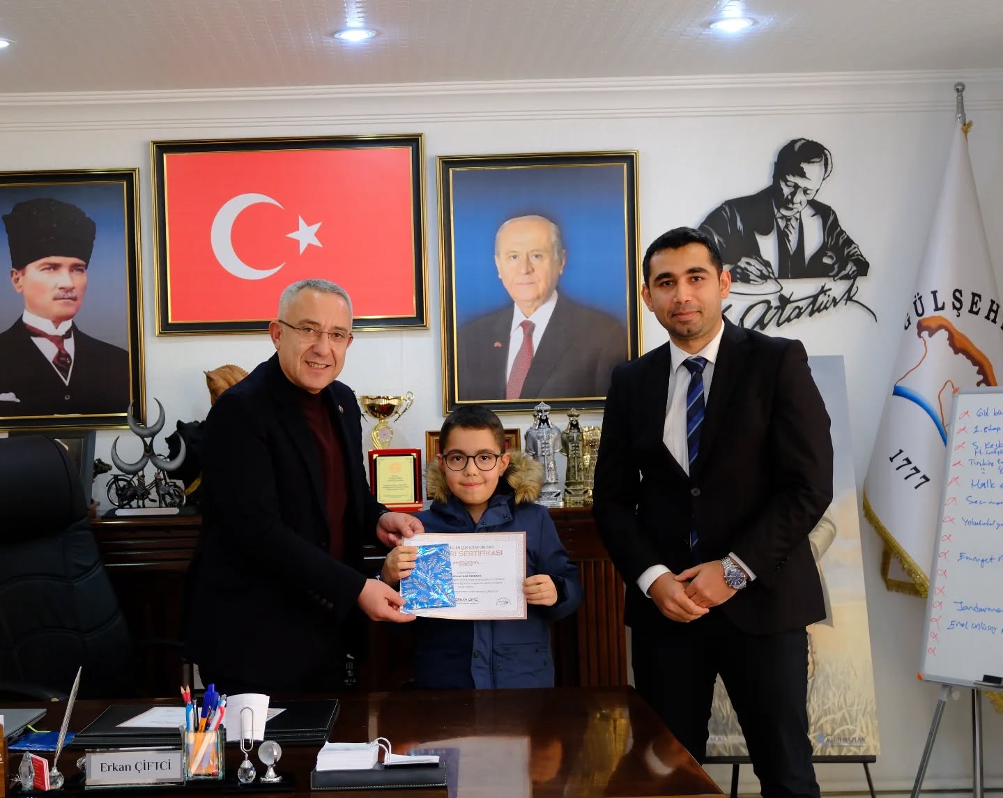 Gülşehir Belediye Başkanı Erkan Çiftci, ilçede 2025 yılı boyunca en çok kitap okuyan öğrencileri makamında ağırlayarak çeşitli hediyelerle ödüllendirdi.