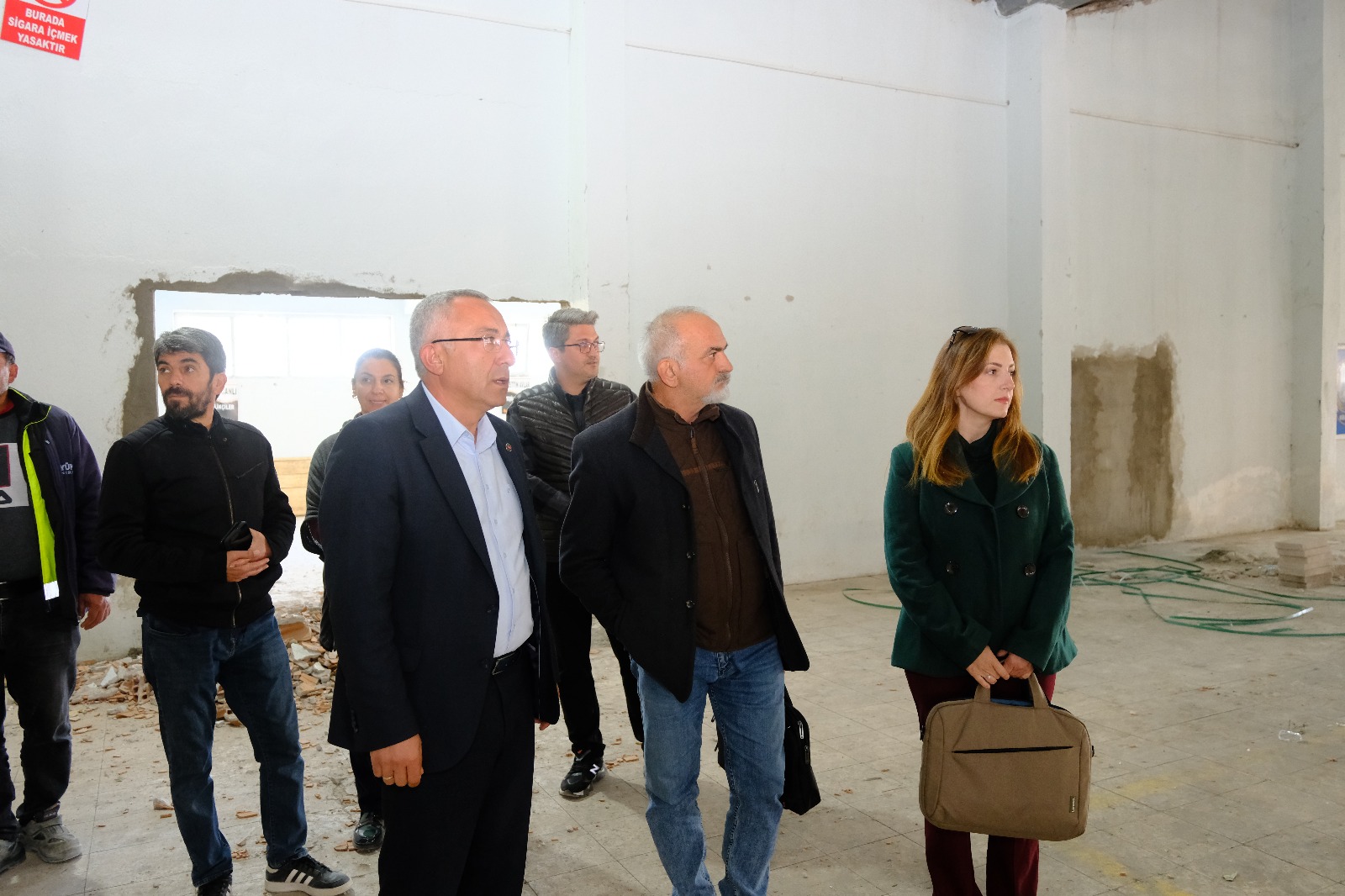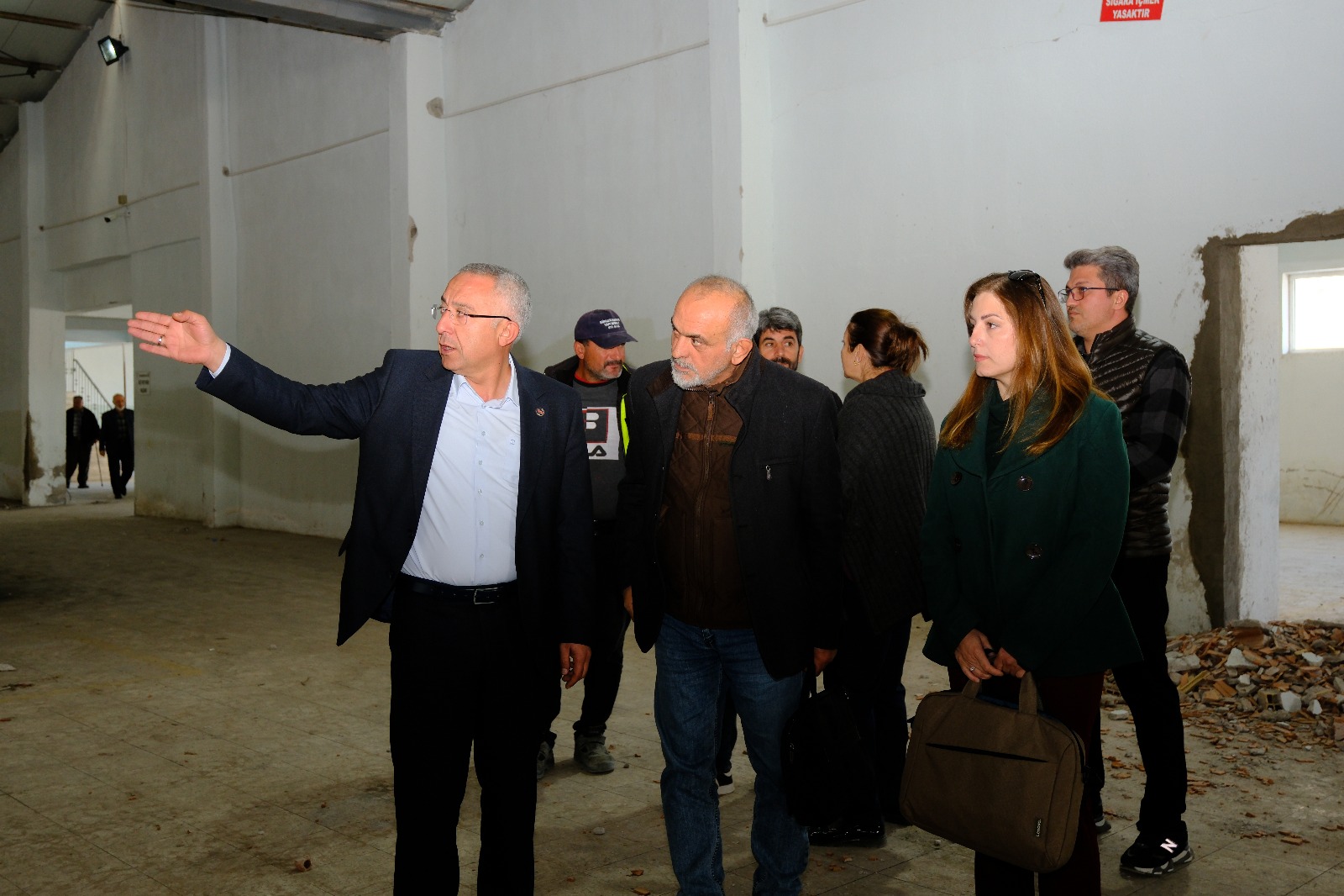 Gülşehir Belediye Başkanı Erkan Çiftci, ilçede yapımı devam eden Kapalı Pazar Yeri projesindeki çalışmaları yerinde inceleyerek yetkililerden bilgi aldı.