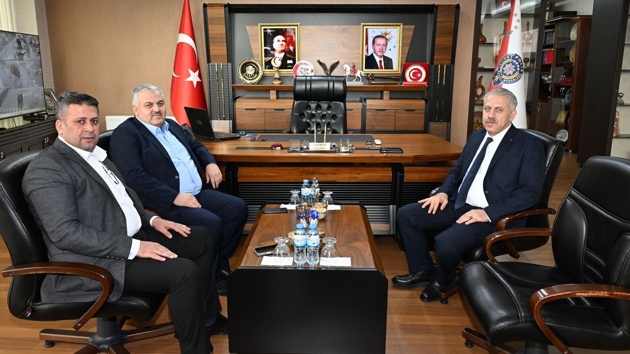 Nevşehir’de iş dünyasının tanınan isimlerinden ÖZ-GÜNGÖR Tarım İştirak sahibi Hacı Güngör ve İzzet Tan, Nevşehir İl Emniyet Müdürü Serkan Karaman’ı makamında ziyaret ederek hayırlı olsun dileklerinde bulundu.