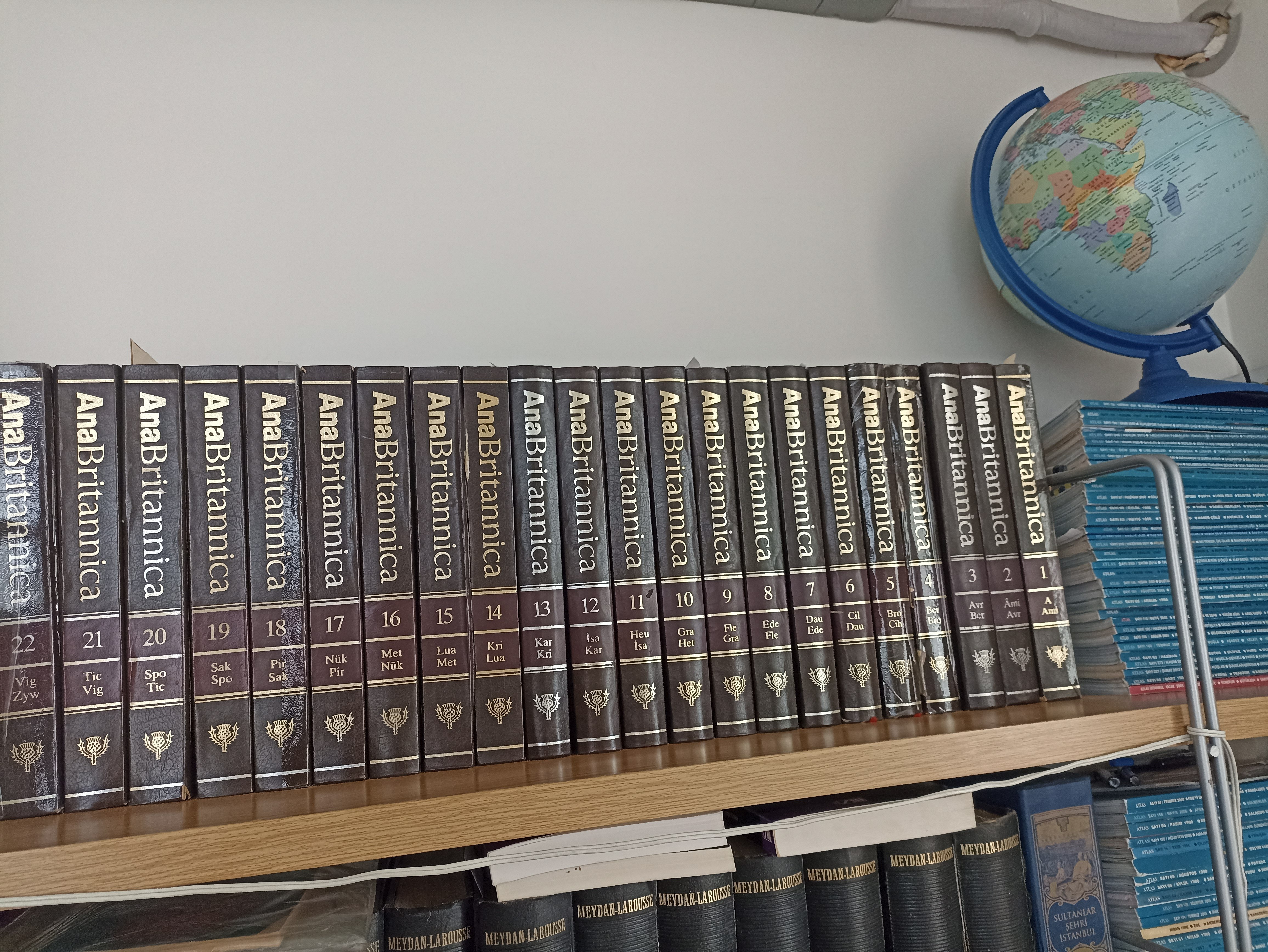 AnaBritannica fasikül fasikül satın aldığımız bir ansiklopedi. Cilt kapakları da hazır.Özenle sıraya koydum, bir naylon torba içinde Ofis Semti'nde bir ciltçiye götürüp teslim ettim.