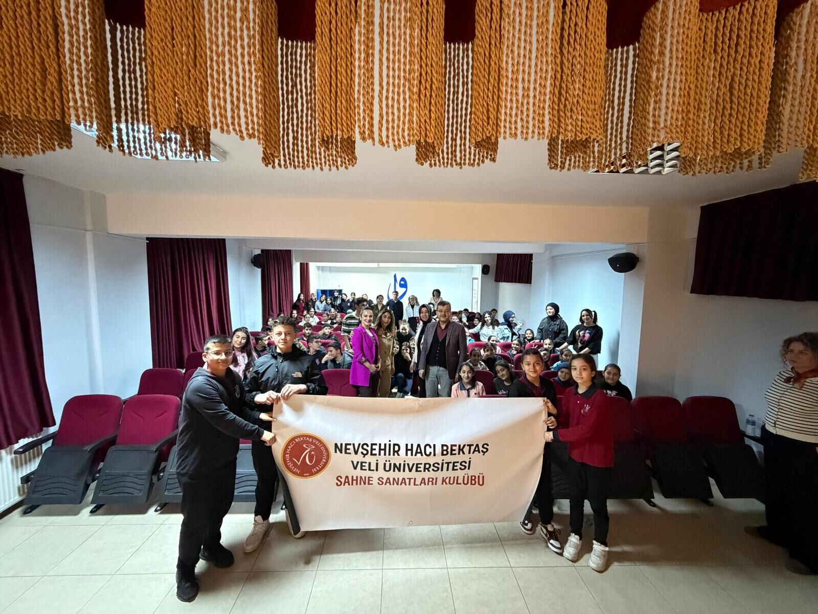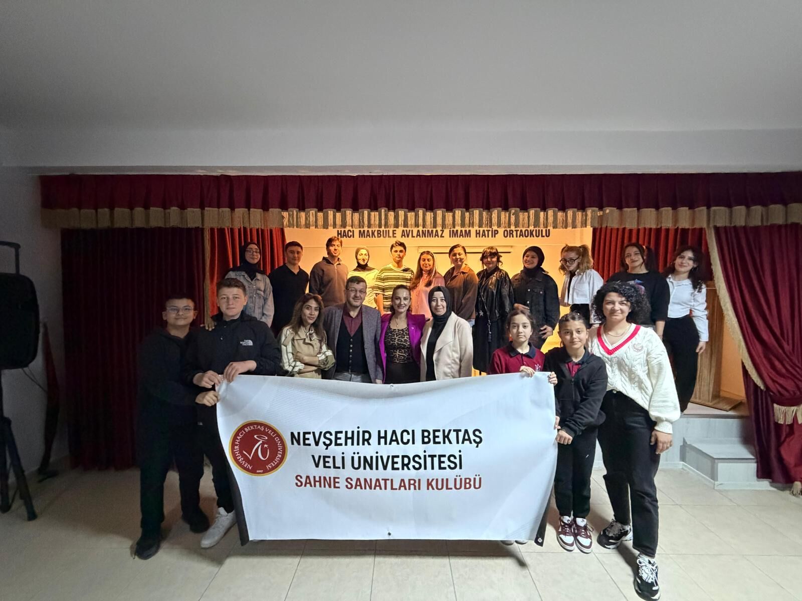 Nevşehir Hacı Makbule Avlanmaz İmam Hatip Ortaokulu’nda 27 Mart Dünya Tiyatrolar Günü kapsamında düzenlenen etkinlikte, NEVÜ Sahne Sanatları Kulübü öğrencileri sahneledikleri oyunlarla öğrencilere iyilik, empati ve nezaket mesajları verdi.