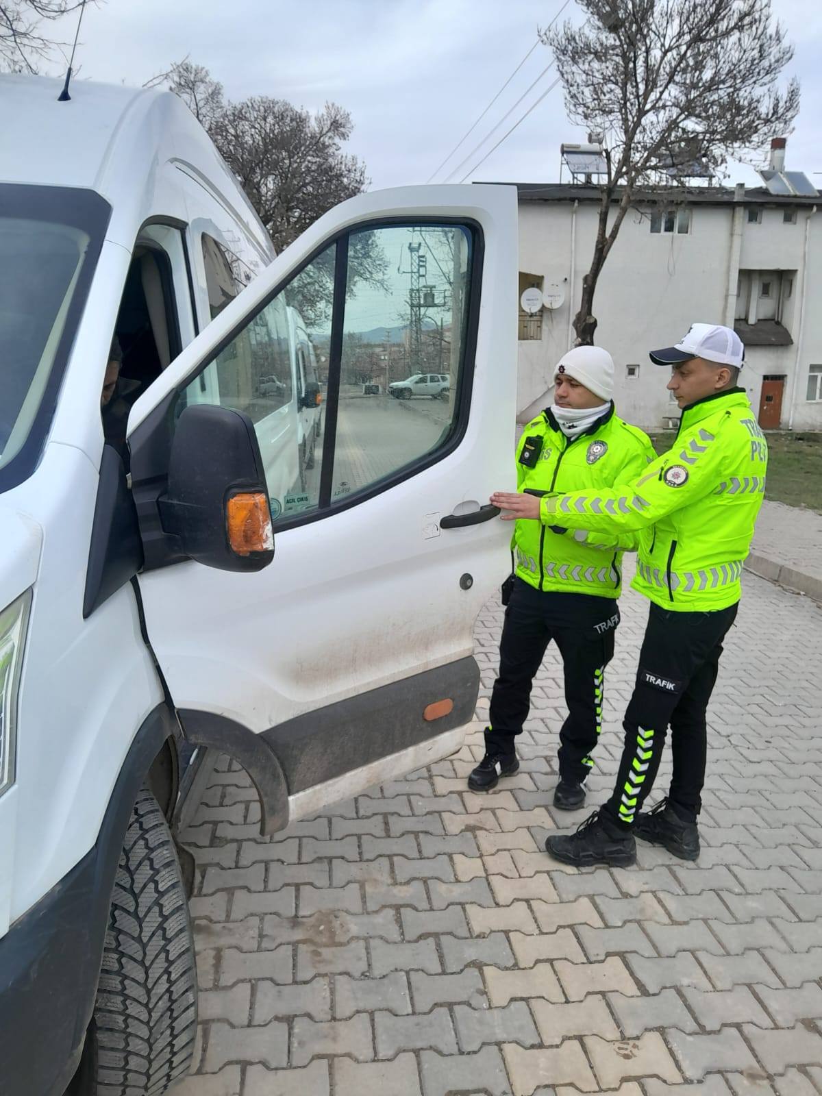 Denetimler sırasında servis araçlarının mevzuata uygunluğu incelenirken, sürücüler ve öğrenciler bilgilendirildi.