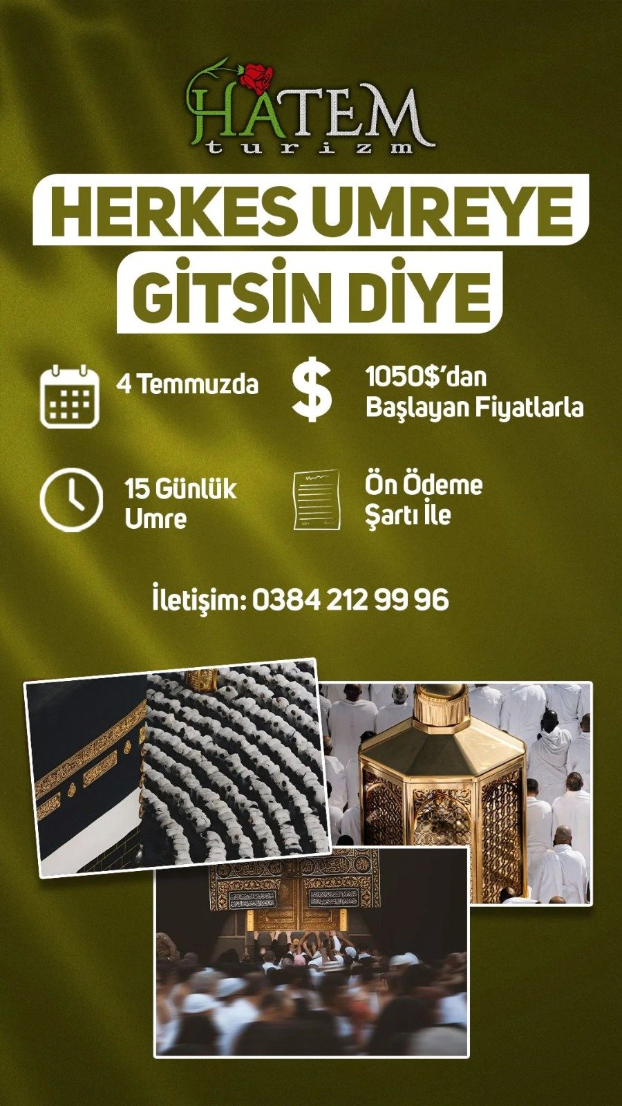 Kutsal topraklara gitmek isteyen vatandaşlar için önemli bir fırsat sunan Hatem Turizm, kampanyalı umre programını duyurdu. Temmuz ayında gerçekleştirilecek programın sınırlı kontenjanla sunulacağı belirtilirken, erken kayıt ve ön ödeme şartı bulunduğu ifade edildi.