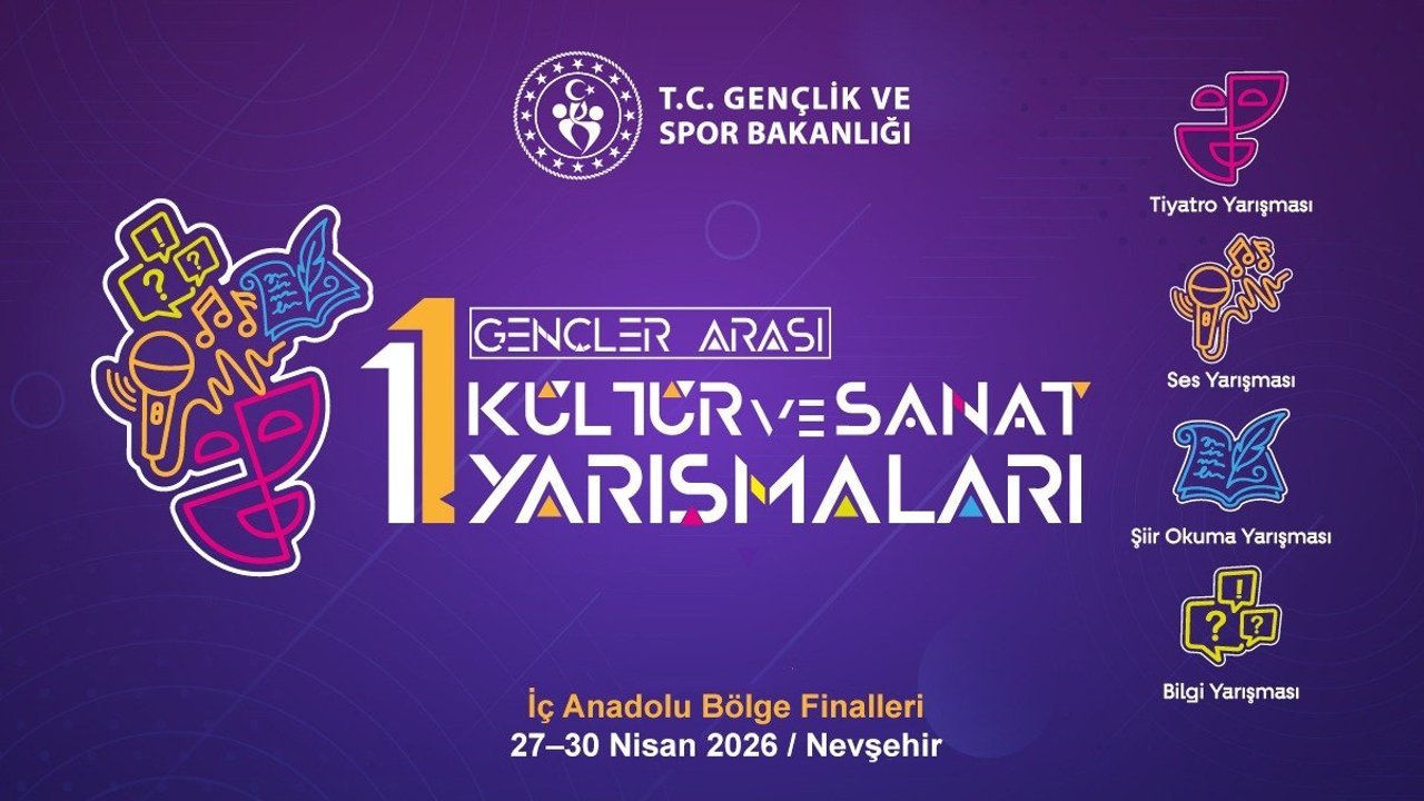 Gençlerin kültürel ve sanatsal gelişimine katkı sunmak amacıyla Gençlik ve Spor Bakanlığı Gençlik Hizmetleri Genel Müdürlüğü koordinasyonunda düzenlenen Ses, Tiyatro, Şiir ve Bilgi Yarışmaları’nın İç Anadolu Bölge Finalleri, 27-30 Nisan 2026 tarihleri arasında Nevşehir’de gerçekleştirilecek.