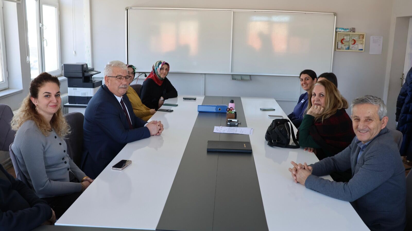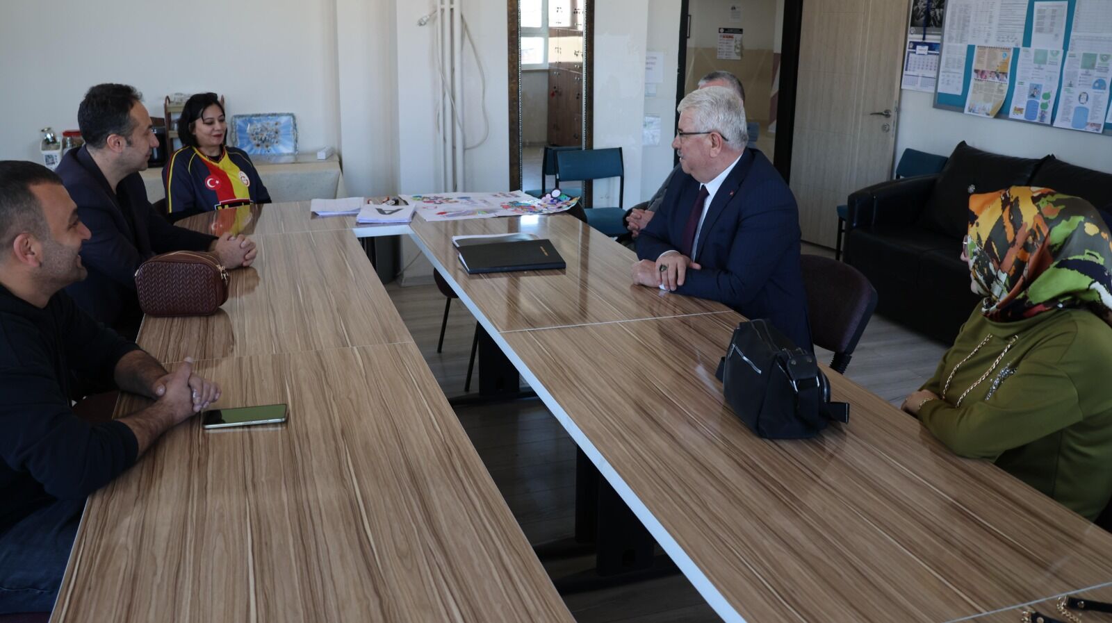 Öğretmenler odasında öğretmenlerle gerçekleştirilen toplantıda ise öğrenci ve velilere yönelik rehberlik hizmetleri, akademik başarının izlenmesi ve Türkiye Yüzyılı Maarif Modeli’nin uygulanma süreçleri ele alındı.