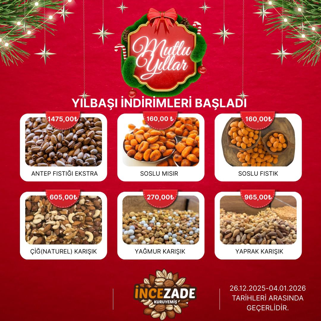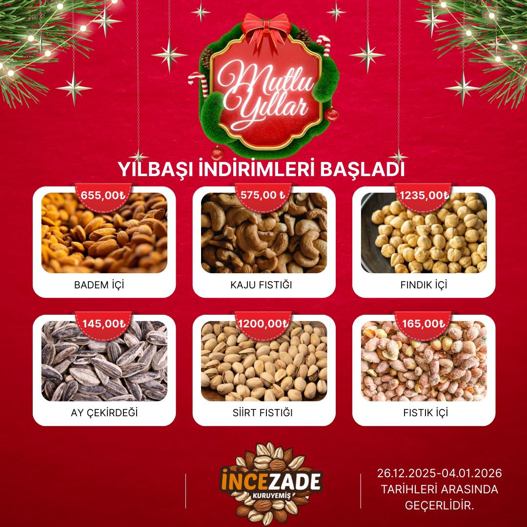 İncezade Kuruyemiş, yeni yıla özel indirimleriyle tüm Nevşehirlileri mağazalarına davet ediyor.