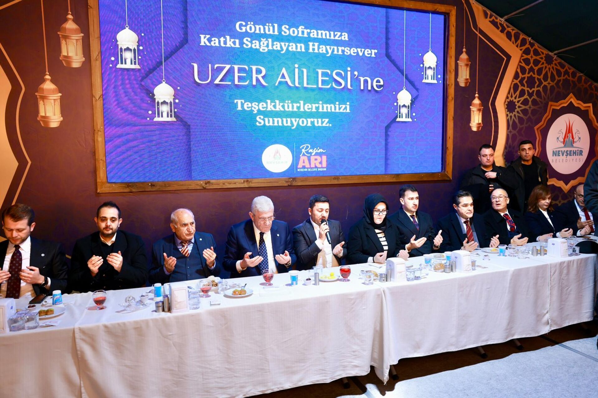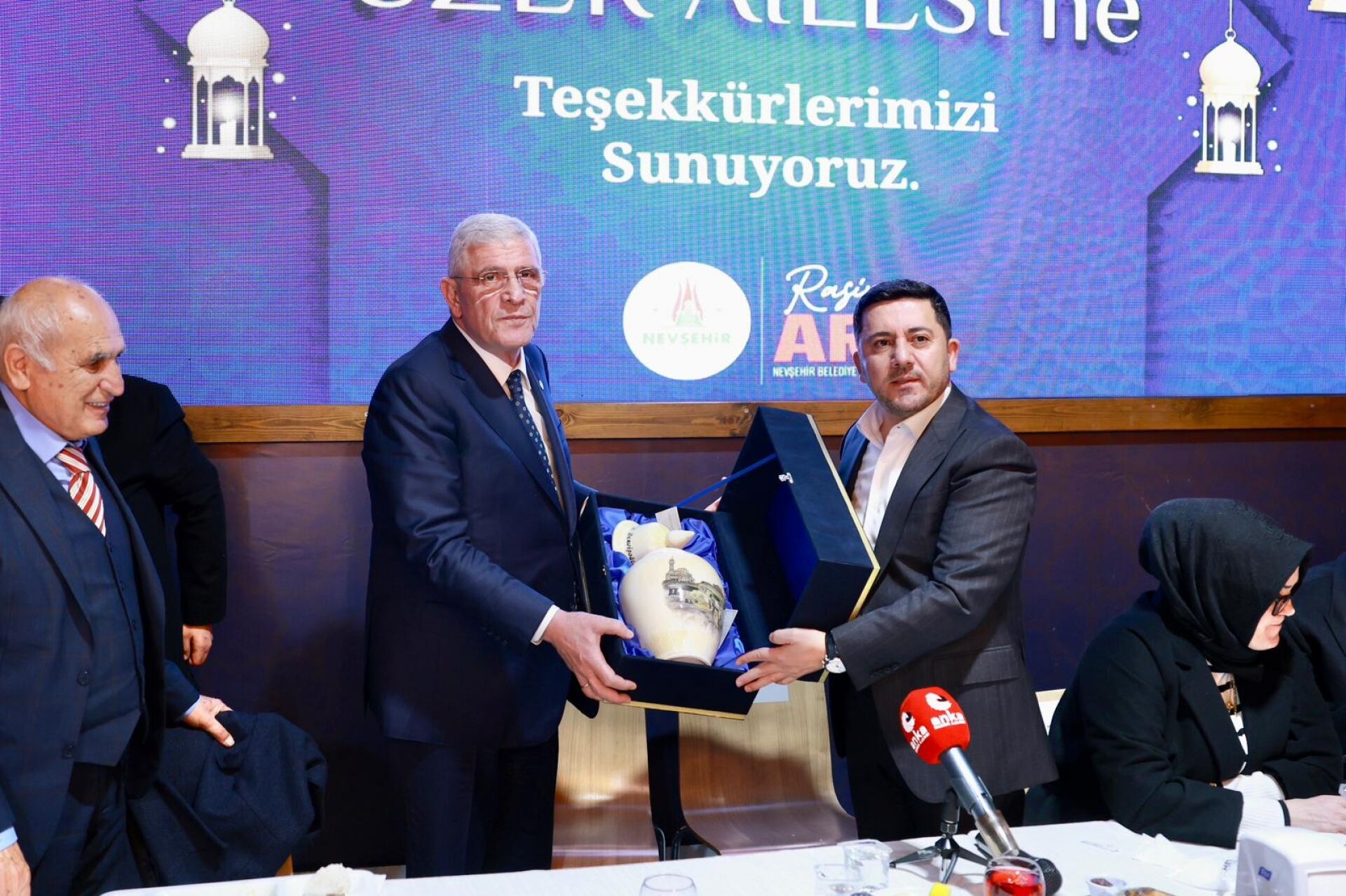 İftar sonrası kısa bir konuşma yapan Dervişoğlu, Ramazan ayının birlik, beraberlik ve paylaşma ayı olduğunu belirterek tüm Nevşehirlilerin Ramazan ayını tebrik etti. Başkan Arı’da programa katılımından dolayı Dervişoğlu’na teşekkür ederek günün anısına hediye takdim etti.