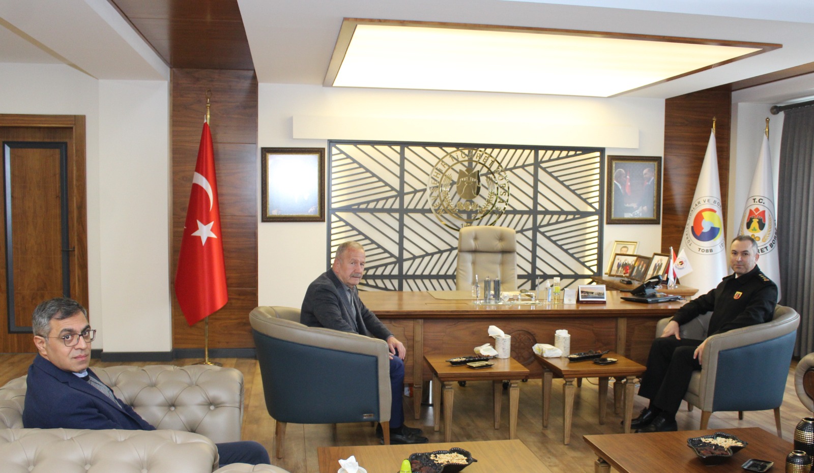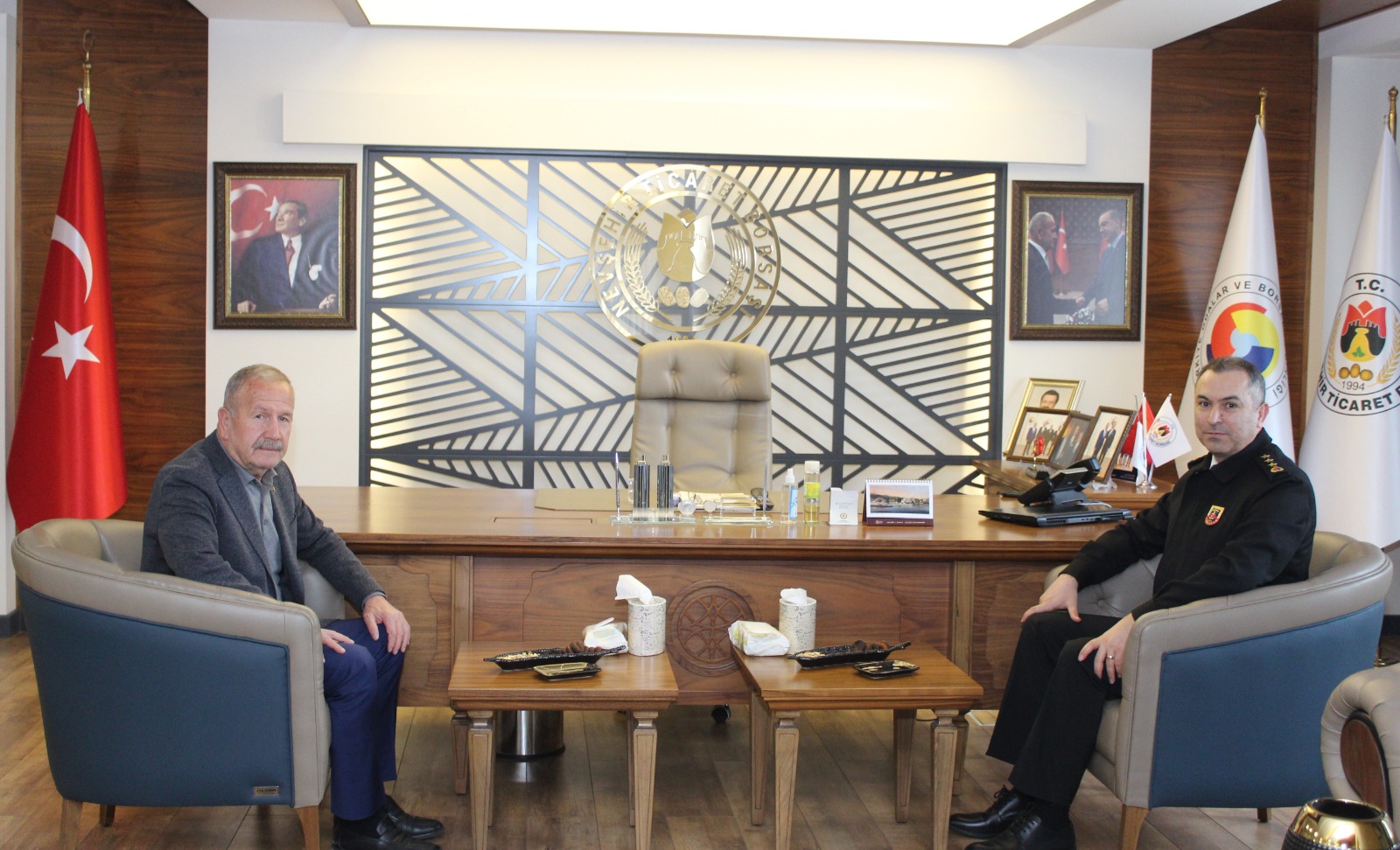 Nevşehir Jandarma At ve Köpek Eğitim Merkezi (JAKEM) Komutanı Jandarma Albay Hüseyin Fırat, Nevşehir Ticaret Borsası (NTB) Yönetim Kurulu Başkanı İbrahim Salaş’ı makamında ziyaret etti.