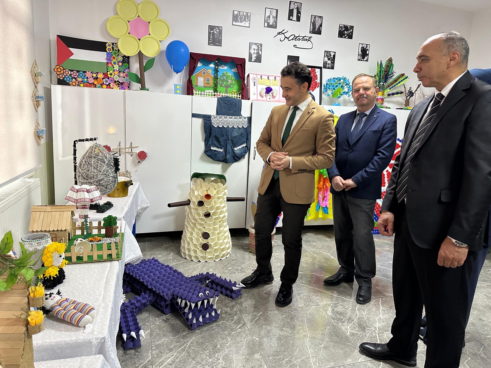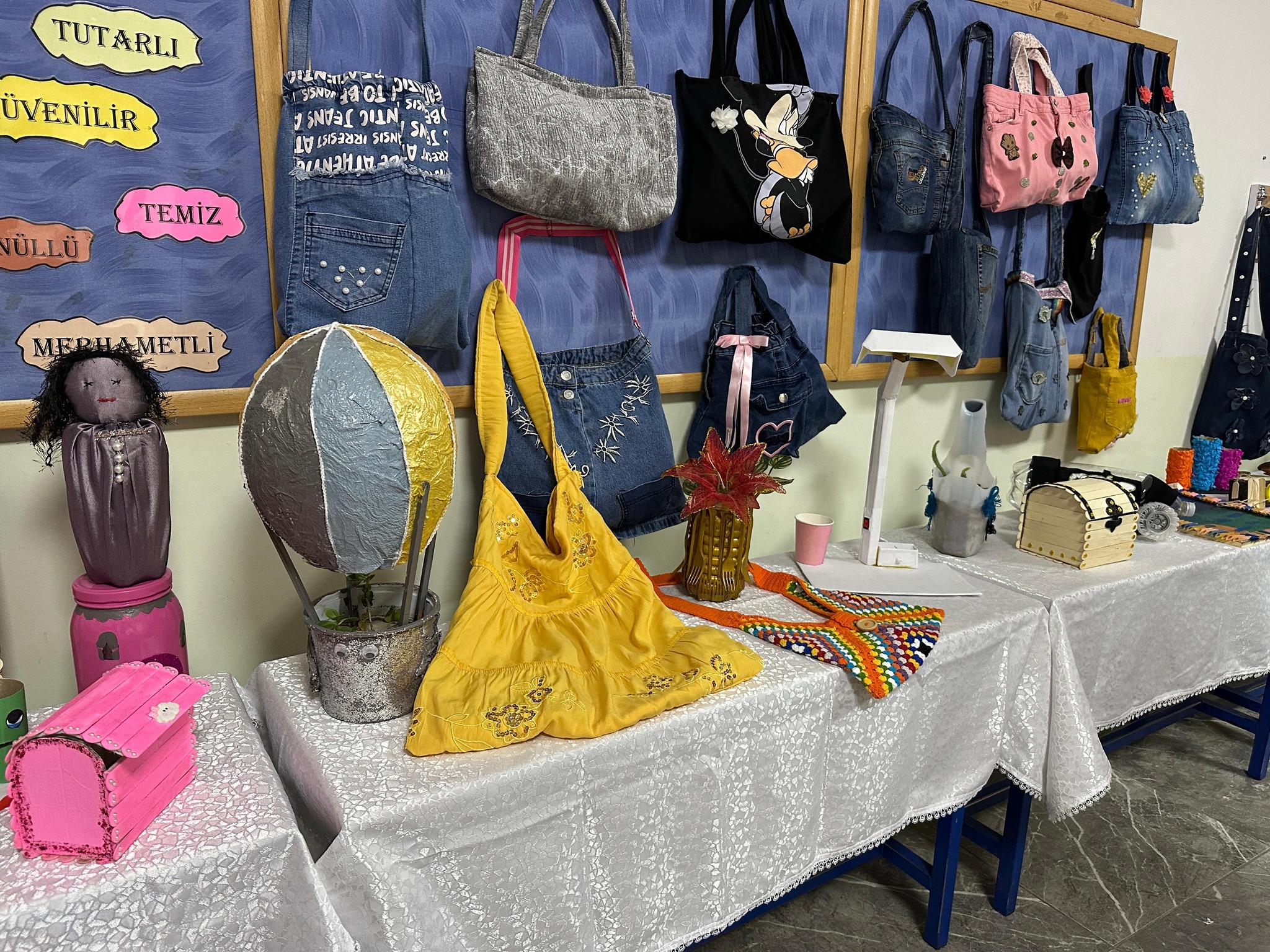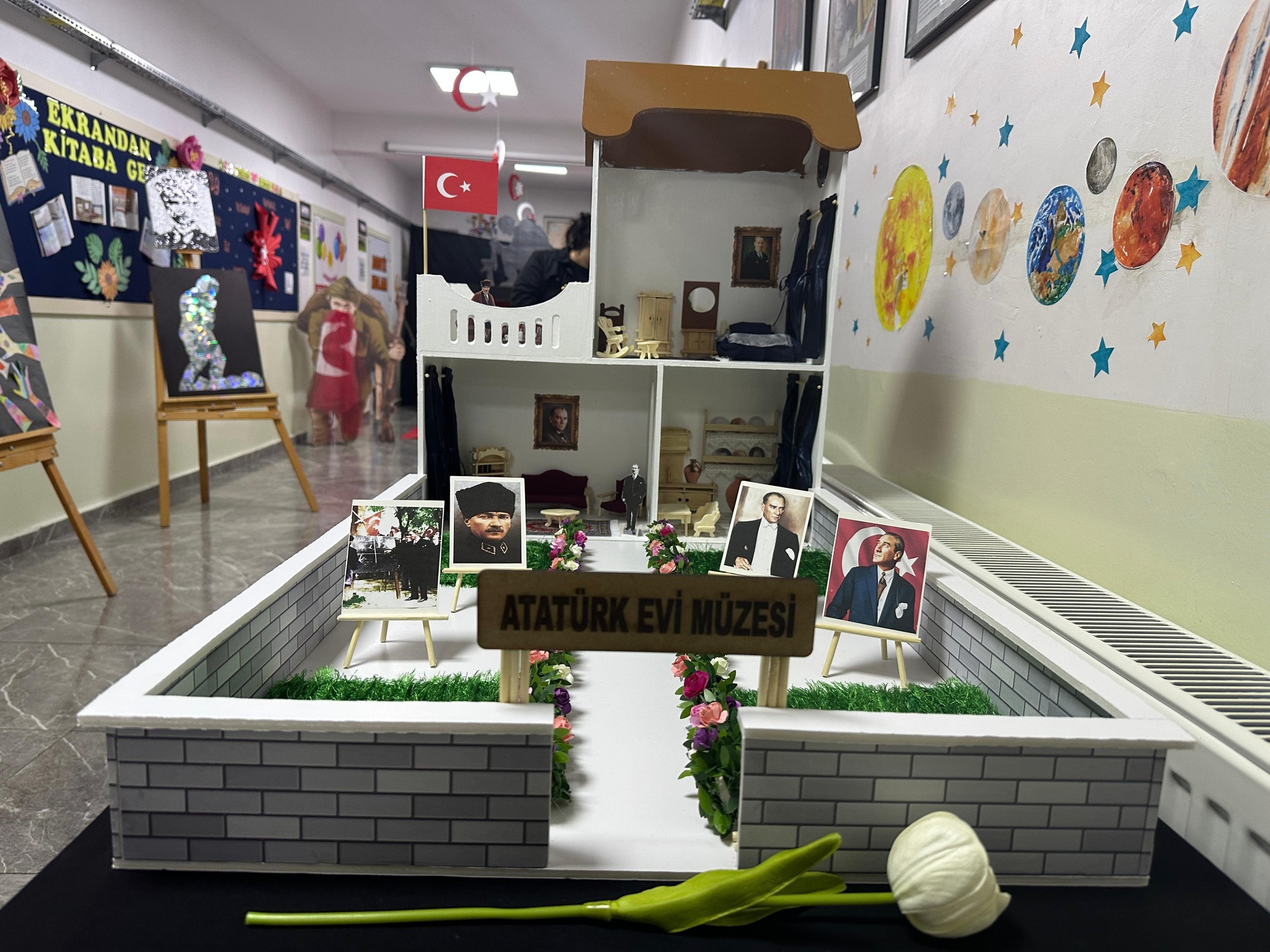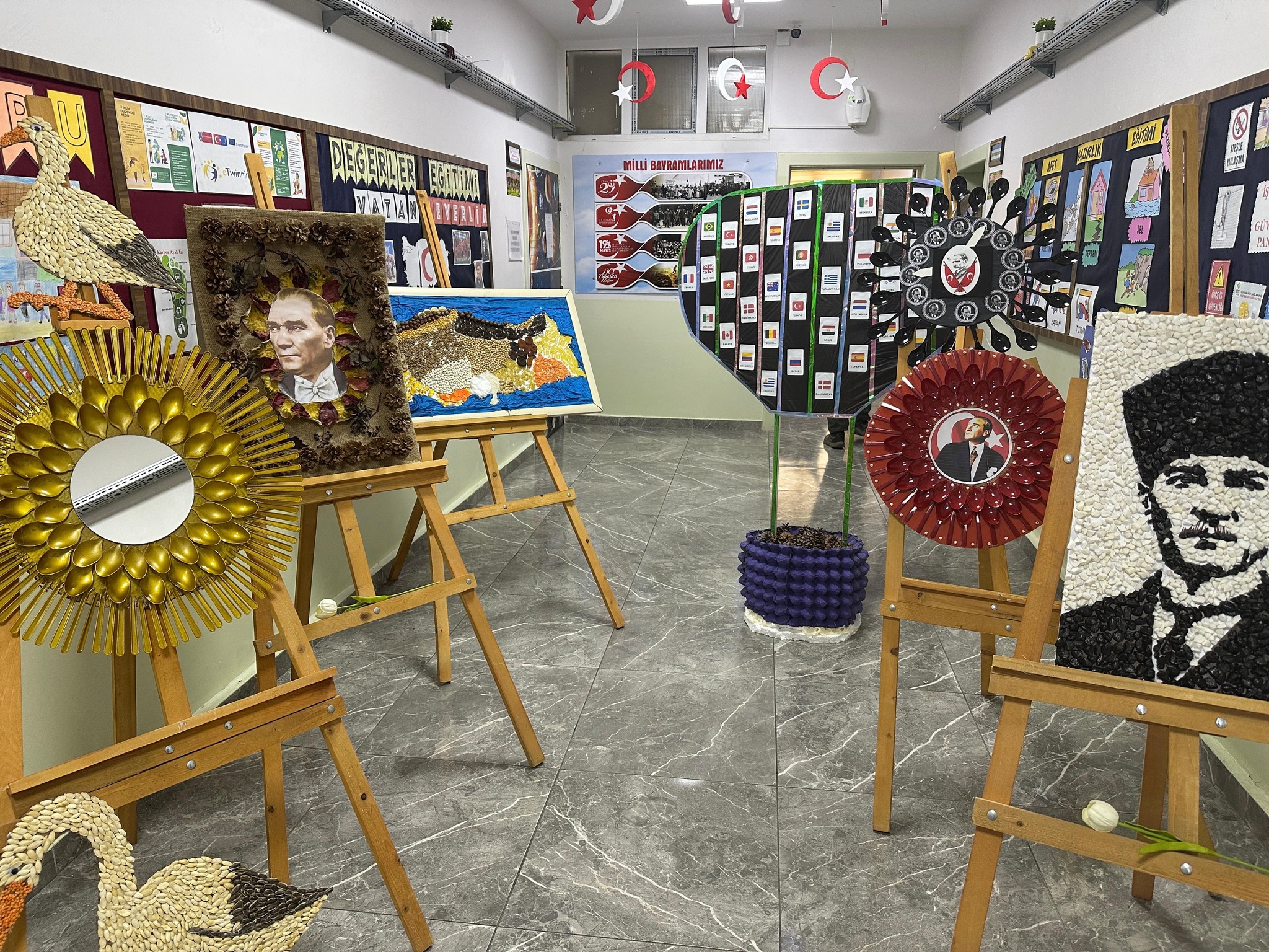 Cumhuriyetimizin kurucusu Gazi Mustafa Kemal Atatürk’ün doğaya olan sevgisi ve çevre bilincinden ilhamla hazırlanan sergide, atık materyaller öğrencilerin yaratıcı dokunuşlarıyla sanata dönüştü.