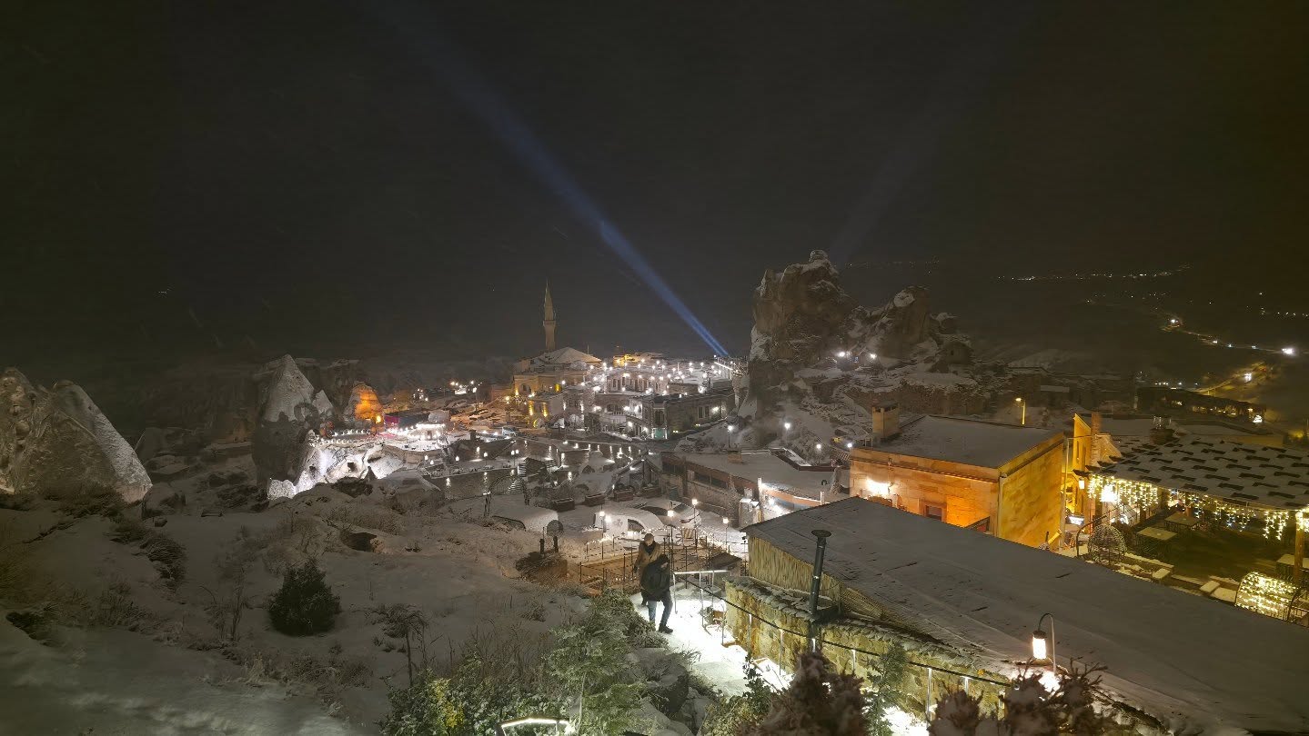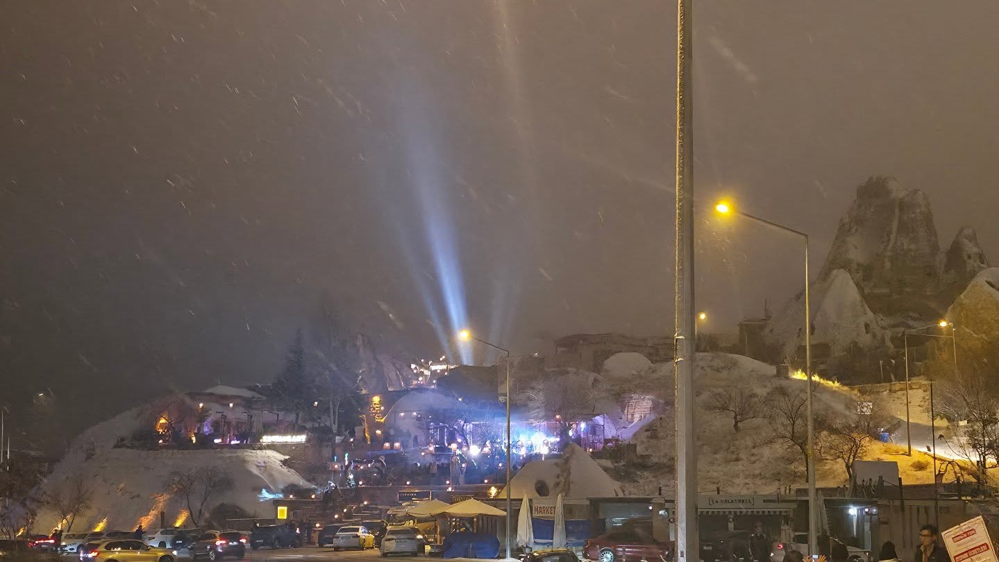 Kapadokya’nın önemli merkezlerinden Göreme ve Ortahisar’da da yılbaşı gecesi renkli görüntülere sahne oldu. Rengârenk ışıklar, havai fişek gösterileri ve eğlence programlarıyla yeni yıl coşkusu sokaklara yansıdı.