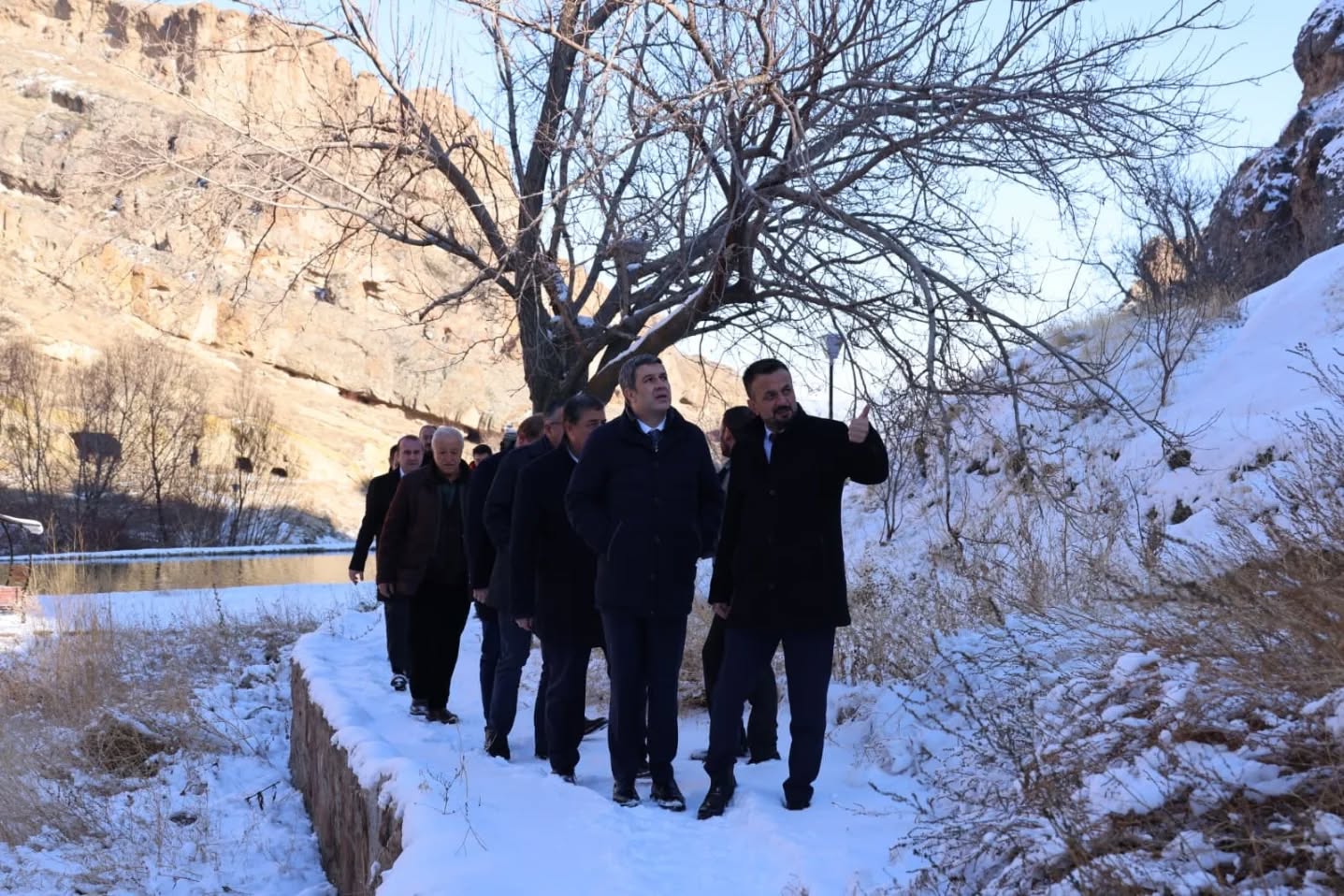Kapadokya Alan Başkanı Cem Aslanbay, Yeşilhisar Kaymakamı Fatih Adıgüzel, Kayseri İl Kültür ve Turizm Müdürü Doç. Dr. Şükrü Dursun ve Yeşilhisar Belediye Başkanı Halit Taşyapan ile birlikte Erdemli Vadisi ve vadi içerisinde yer alan Saray Manastırı’nda incelemelerde bulundu.