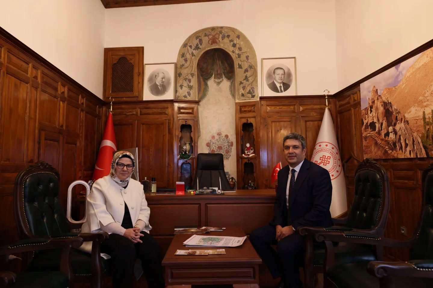 Kapadokya Alan Başkanı Cem Aslanbay, Alan Başkanlığı’nın Kayseri’deki hizmet binasında Kayseri Valisi Gökmen Çiçek, AK Parti Kayseri Milletvekili Ayşe Böhürler ve Melikgazi Belediye Başkanı Doç. Dr. Mustafa Palancıoğlu’nu ağırladı. Ziyarette Kapadokya'nın doğal ve kültürel mirasının korunması ile bölgenin turizm potansiyelinin güçlendirilmesine yönelik önemli değerlendirmelerde bulunuldu.