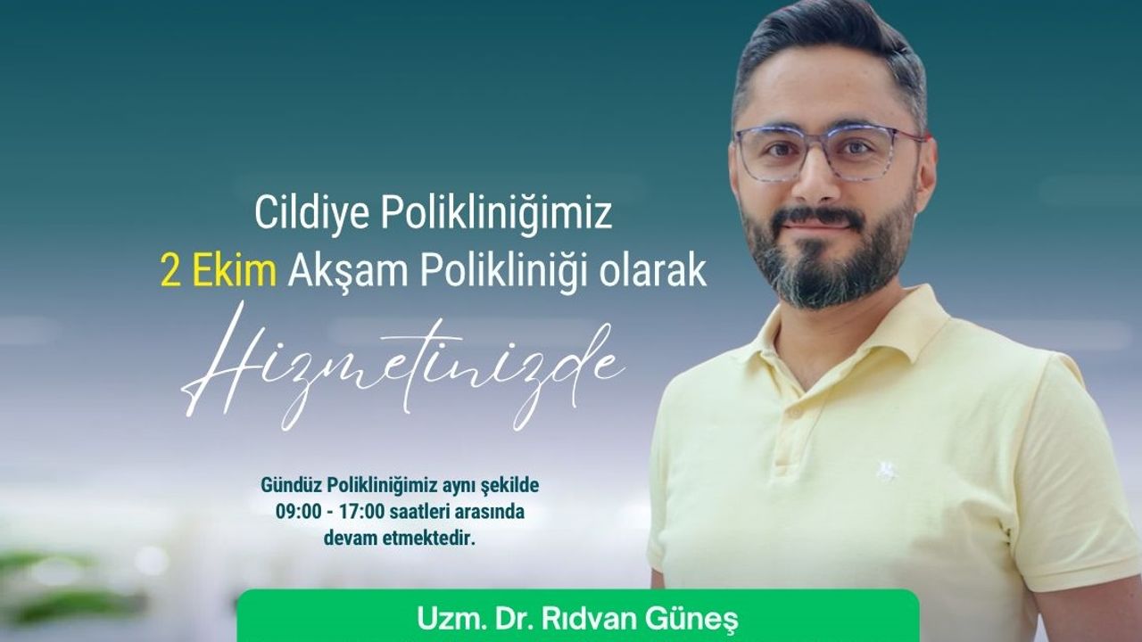 Uzm. Dr. Rıdvan Güneş tarafından yürütülecek akşam polikliniği, 18.00 – 21.00 saatleri arasında hizmet verecek.