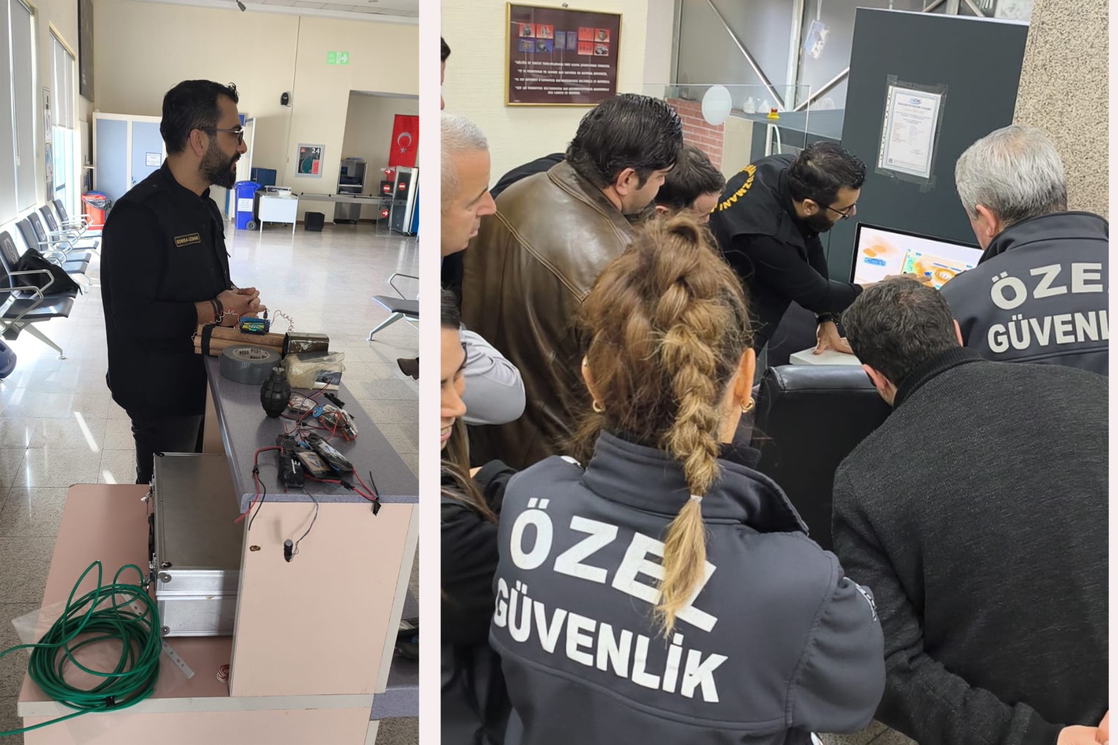 Havalimanı güvenlik personelinin olası tehditlere karşı farkındalığını artırmak, şüpheli paket ve bomba düzeneklerine karşı doğru yaklaşım yöntemlerini pekiştirmek amacıyla yapılan eğitimde, uzman ekipler tarafından teorik ve uygulamalı bilgilendirme yapıldı.