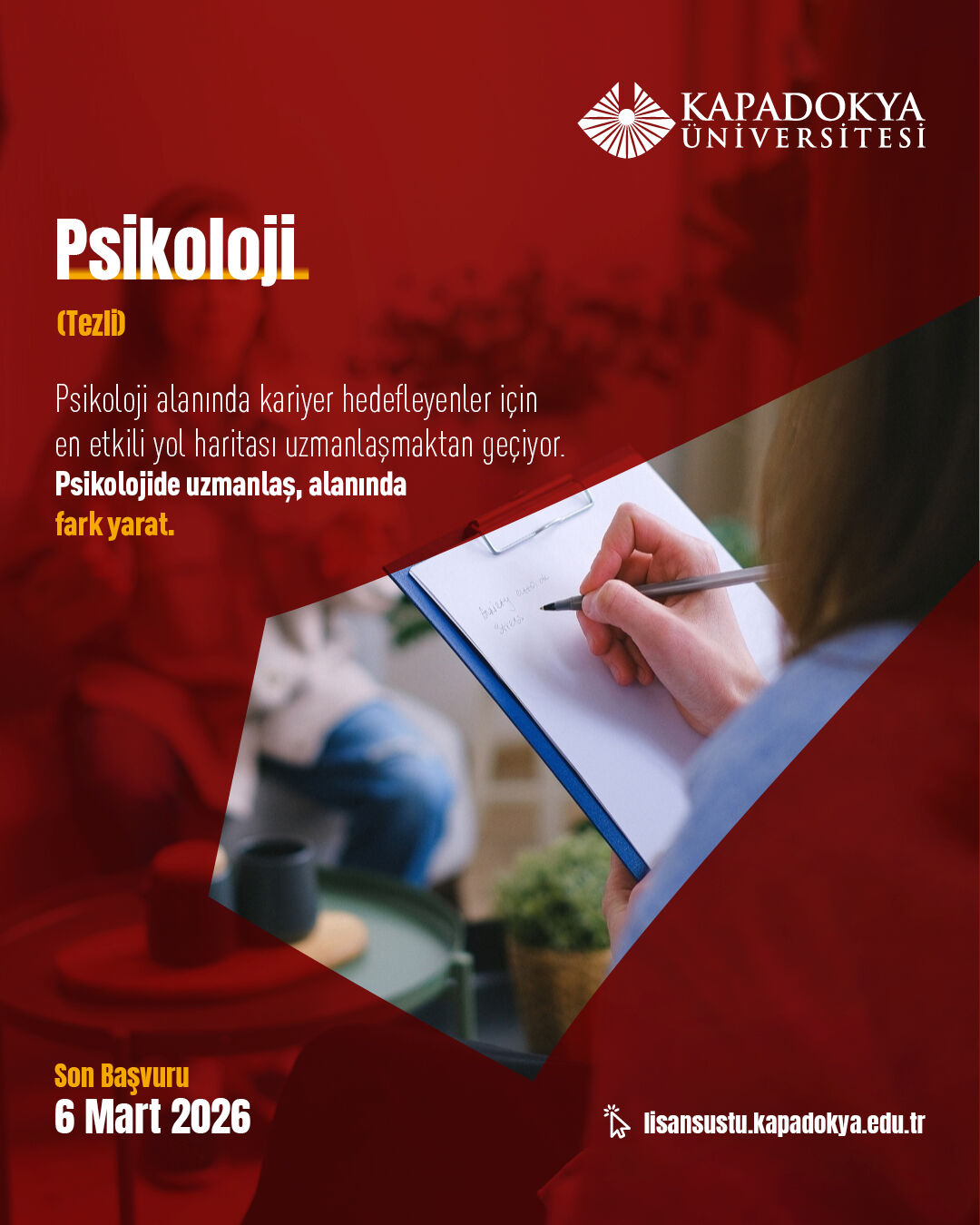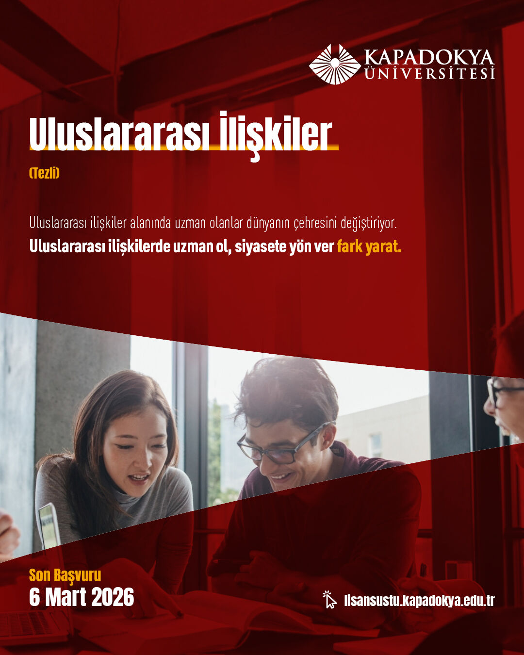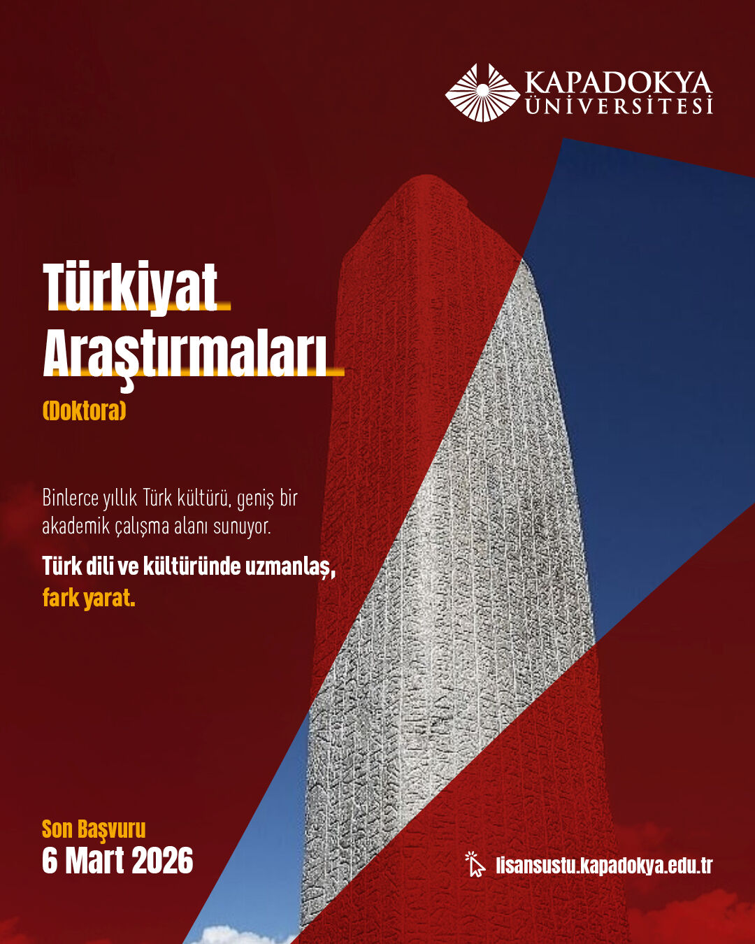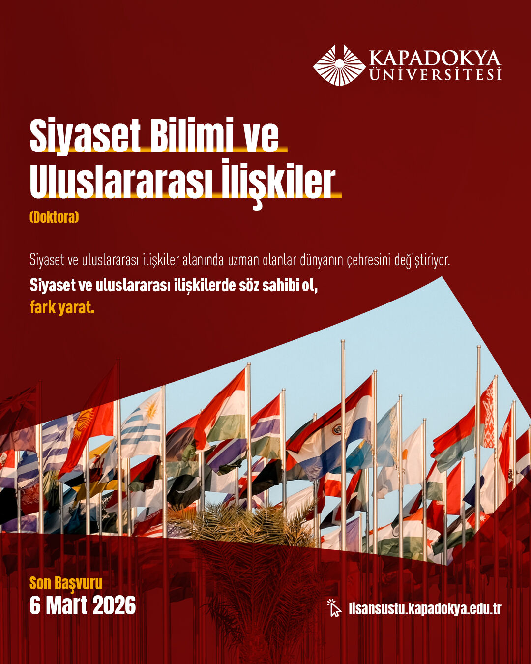Kapadokya Üniversitesi, lisansüstü öğrenci adaylarını ‘Seçimlerinle Fark Yarat’ anlayışı doğrultusunda akademik yolculuklarını şekillendirmeye davet ediyor. 27 Şubat’ta başlayan ve 6 Mart 2026 tarihinde sona erecek lisansüstü başvuru şartlarına https://lisansustu.kapadokya.edu.tr/ adresinden ulaşılabiliyor; sorular ise [email protected] adresine iletilebiliyor.