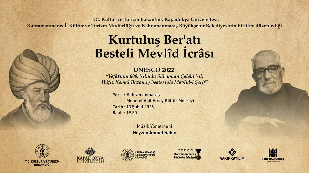 Kapadokya Üniversitesi (KÜN), 6 Şubat 2023 tarihinde yaşanan büyük deprem felaketinin anılması ve 12 Şubat Kahramanmaraş’ın Kurtuluşu vesilesiyle kültürel ve manevi mirası yaşatma çalışmaları kapsamında, “Kurtuluş Ber’atı Besteli Mevlîd İcrâsı” programını Kahramanmaraş’ta gerçekleştirecek.