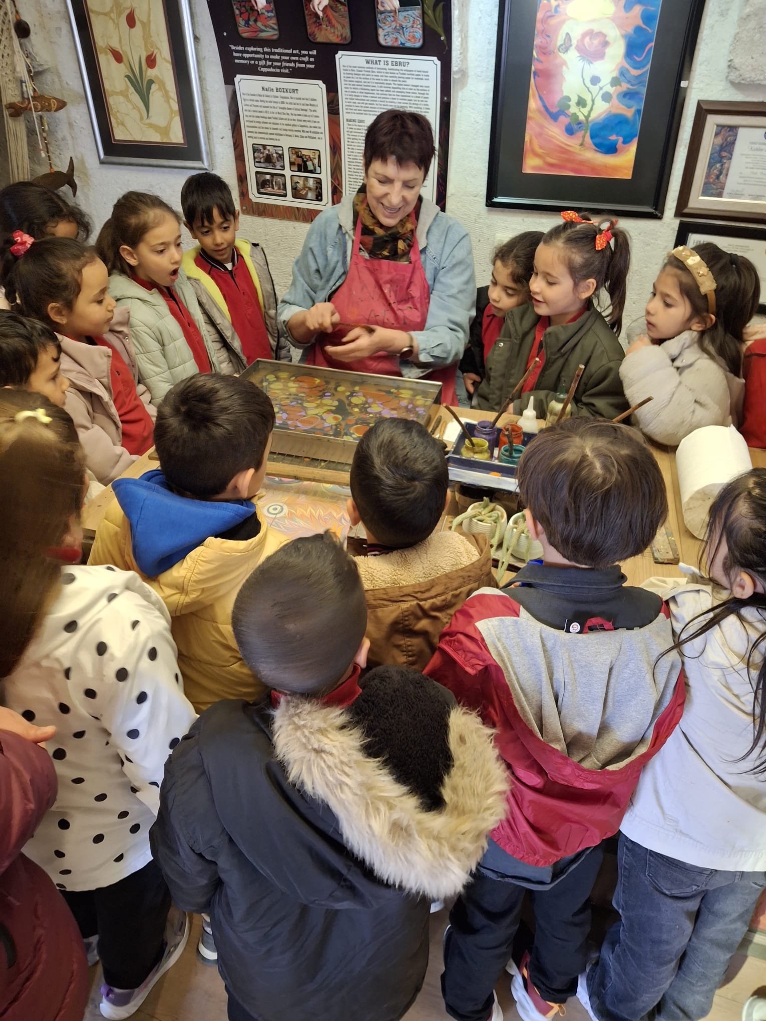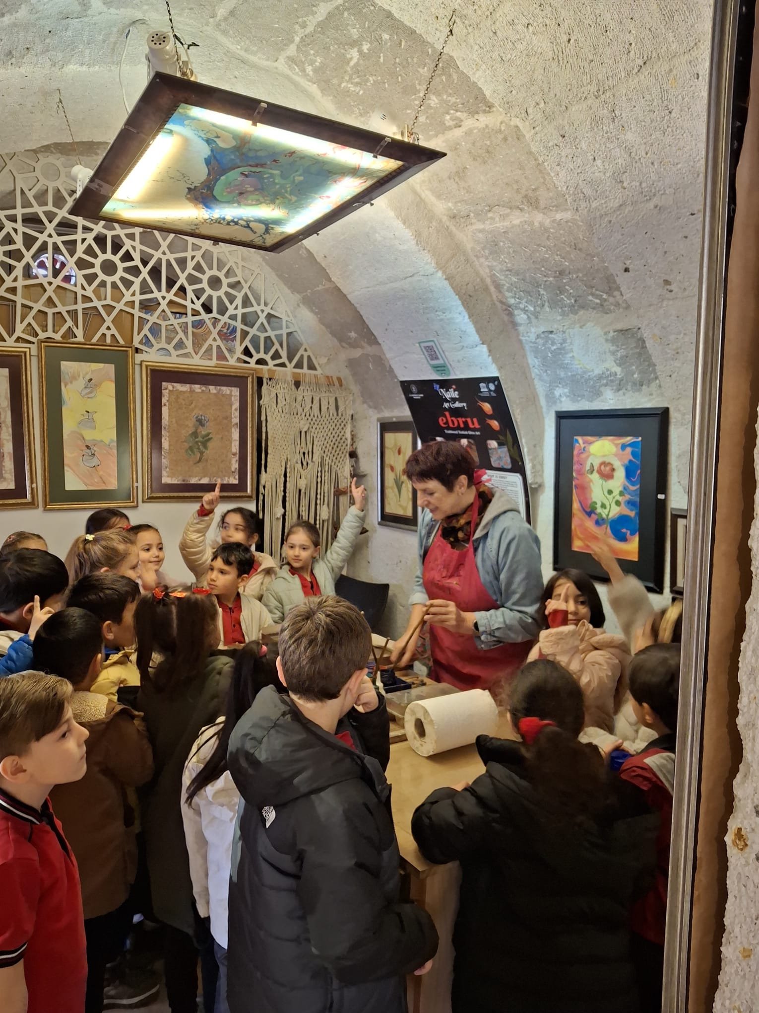 Kapadokya’nın eşsiz atmosferinde gerçekleşen etkinlik, hem öğrenciler hem de öğretmenler tarafından büyük ilgi gördü. Ebru sanatıyla tanışan çocuklar, bu sanatı yaşatacaklarının sözünü verdiler.