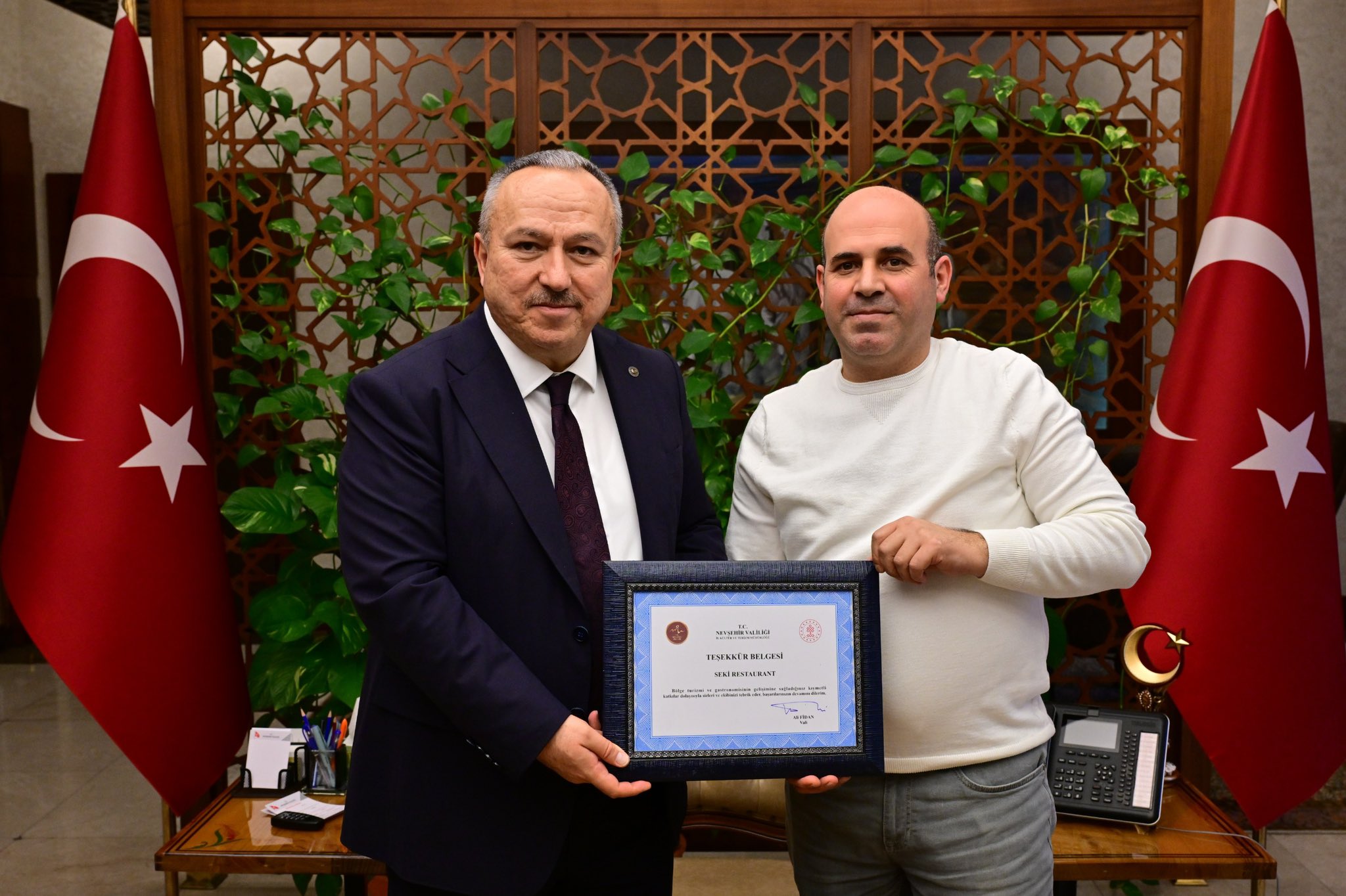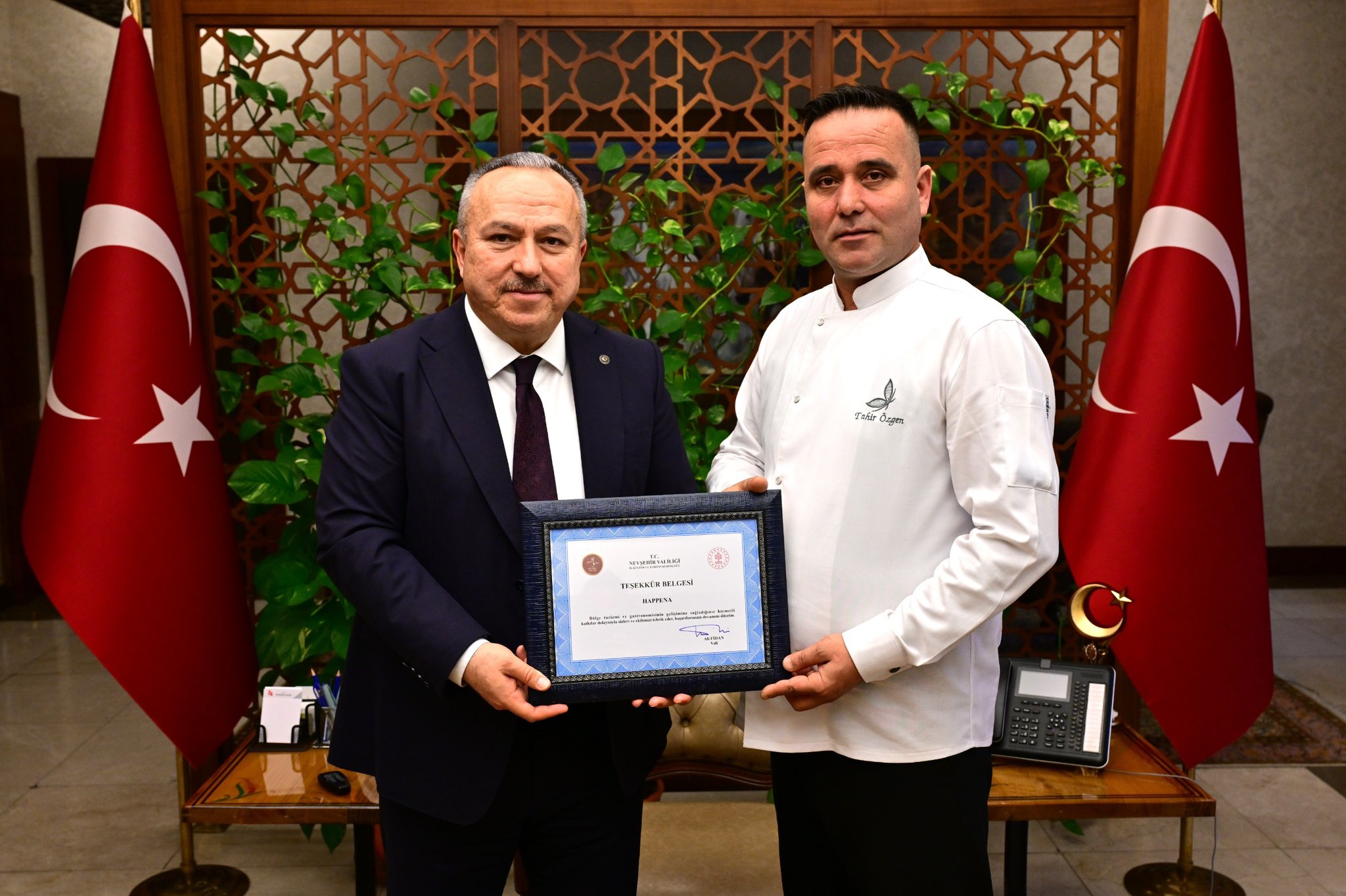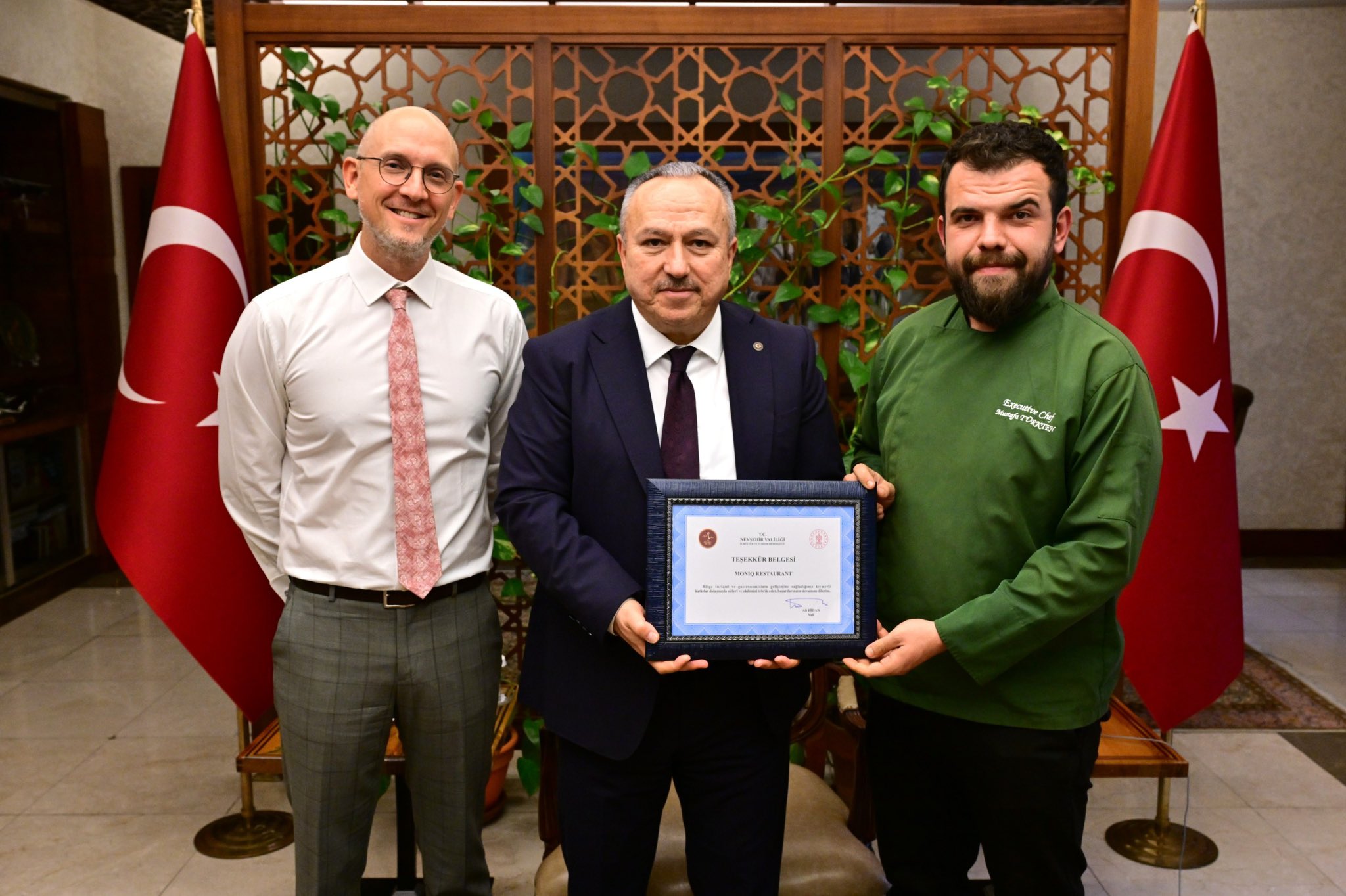 Nevşehir Valisi Ali Fidan, Michelin Rehberi’ne giren işletmeciler ve şefleri Valilik Makamında kabul ederek teşekkür belgelerini takdim etti.
