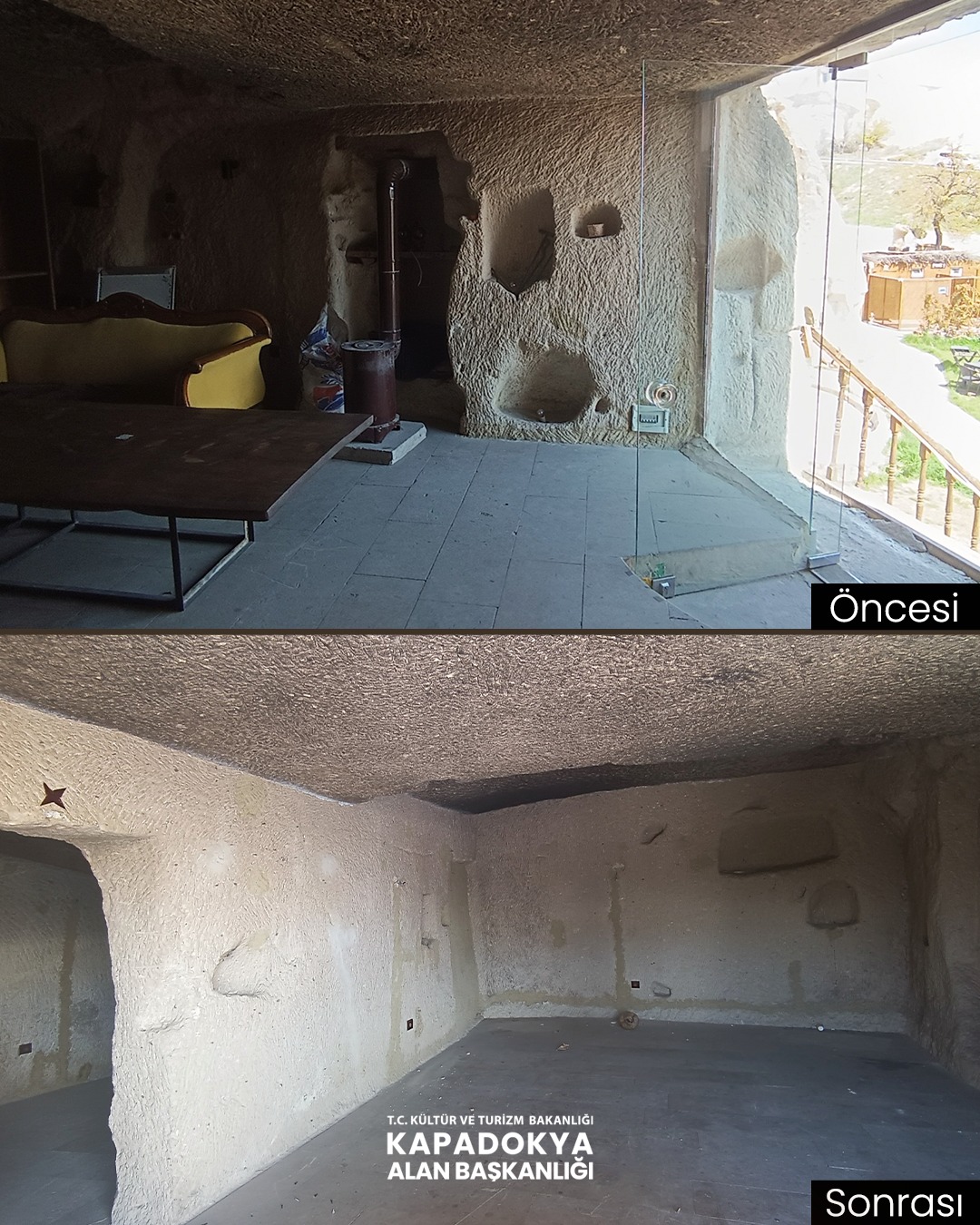 I. Derece Arkeolojik Sit – I. Derece Doğal Sit Alanı içerisinde yer aldığı belirlenen ve restoran olarak kullanılan kaçak yapının kaldırılmasıyla birlikte, kaya oluşumları ve tarihi peyzajla bütünleşen peribacalarının özgün silüeti yeniden görünür hale geldi.