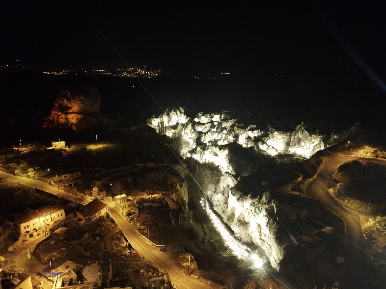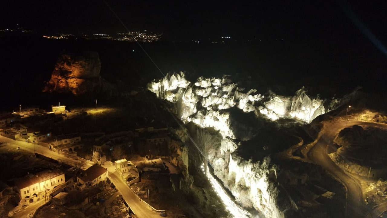 Nevşehir’in Ürgüp ilçesine bağlı, Kapadokya’nın merkezi konumundaki Ortahisar kasabasında, doğal güzellikler gece aydınlatmalarıyla yeni bir görünüme kavuştu. Balkan Vadisi ve Kolastra Vadisi (Ortahisar Çayı), Kapadokya Alan Başkanlığı tarafından yapılan aydınlatma çalışmalarıyla akşam saatlerinde de görsel bir şölene dönüştü.